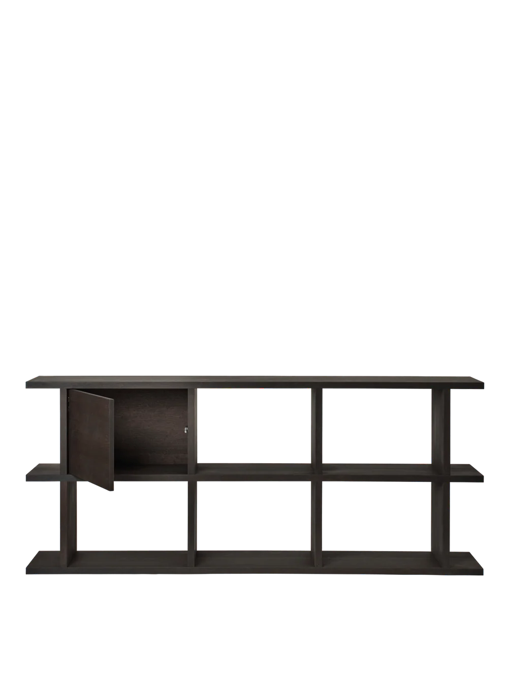 Kona Cabinet Insert ger din Kona Bookcase stängd, organiserad förvaring utan att kompromissa med den rena designen. Skåpet är tillverkat av FSC® Mix-certifierad ekfanér med MDP-kärna, mörkbetsad och lackerad för hållbarhet och ett tidlöst uttryck.