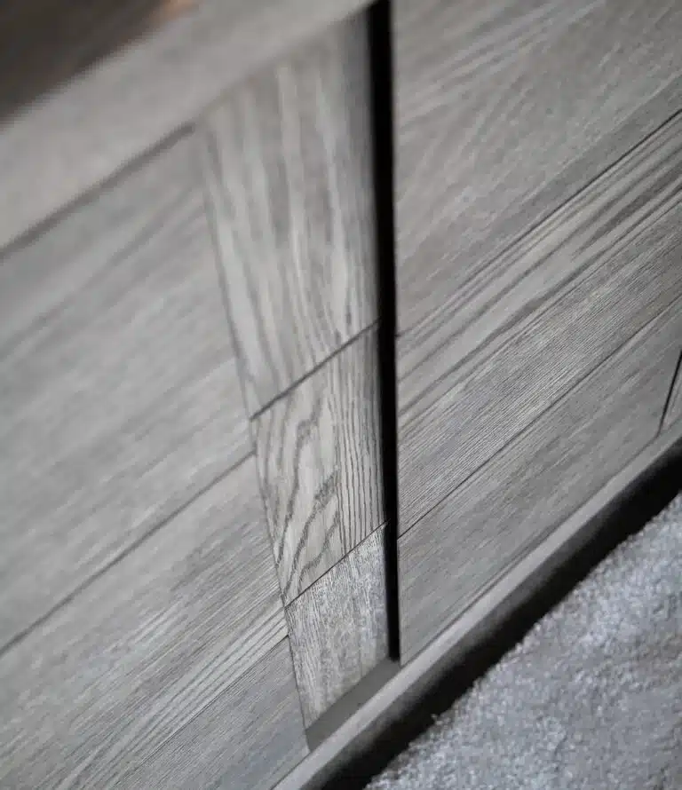 Byrån Hunter från Artwood består av ekfanér i färgen Antique Grey. Hunter serien ger ett både modernt och robust intryck med sin minimalistiska design och tydliga trästruktur. Byrån har tre utdragbara lådor.