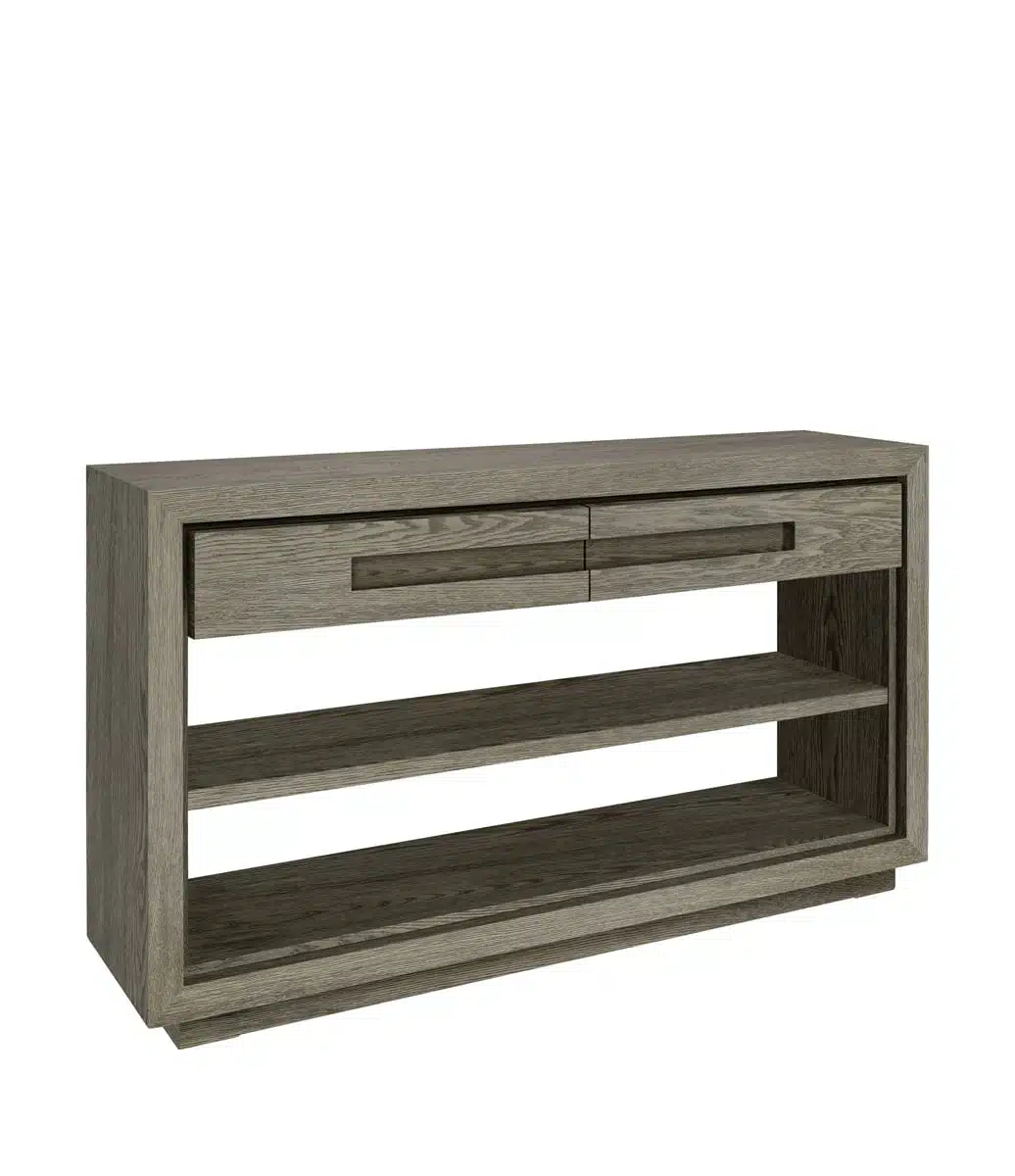 Skapa en välkomnande och funktionell miljö i ditt hem med Hunter konsolbord från Artwood, en perfekt kombination av stilren design, smart förvaring och gediget hantverk. Den antikgrå finishen ger bordet en tidlös och elegant karaktär, medan den tydliga trästrukturen i ekfaner tillför värme och naturlig känsla.