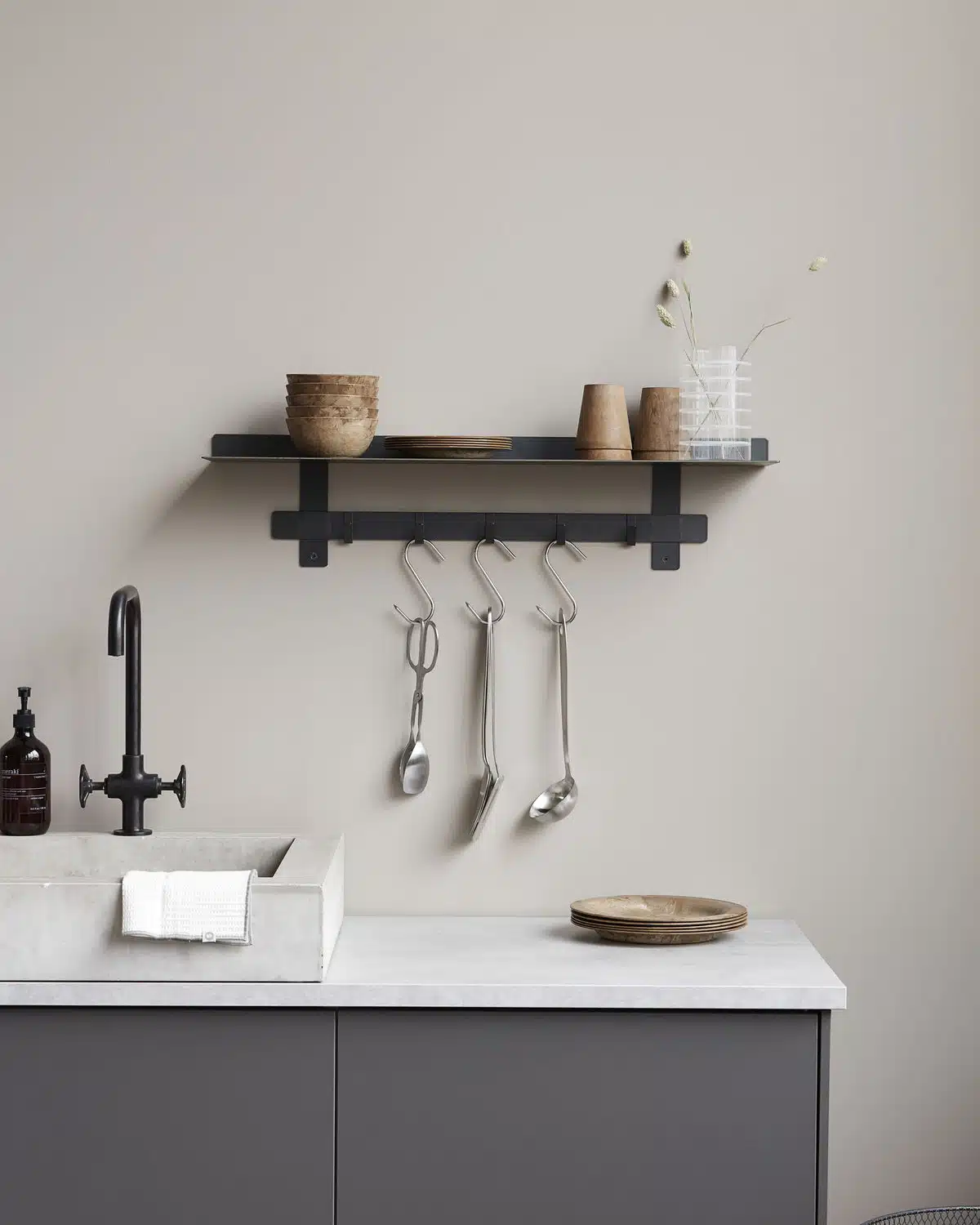 När det praktiska och estetiska möts i en vacker kombination. Stålhyllan Tag från House Doctor är både ett praktiskt, elegant och funktionellt tillskott till ditt vardagsrum, kök eller sovrum. Hyllan på toppen ger dig förvaringsutrymme för din heminredning medan de 5 krokarna nedan låter dig förvara kläder eller hemtextilier, beroende på var du väljer att använda Tag.