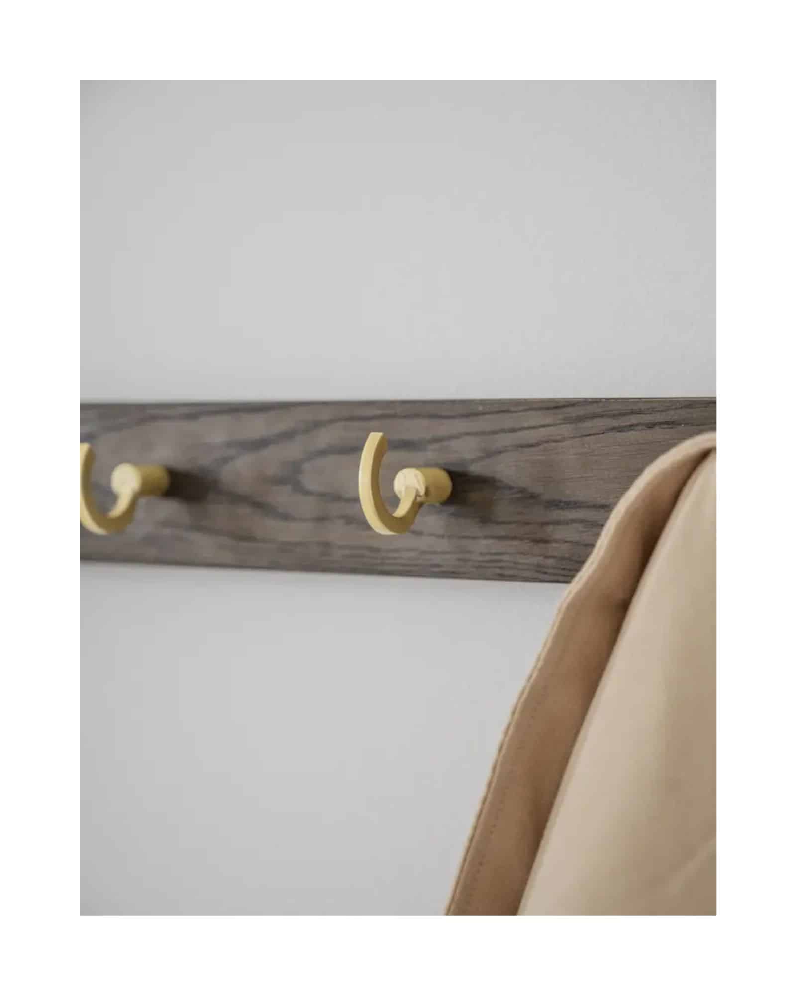Välj mellan träknoppar eller mässingsfärgade krokar