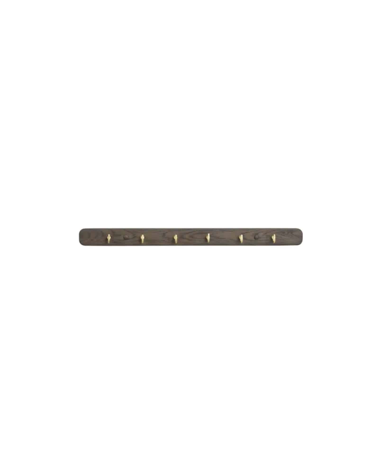 Inverness Wall Hook Rack är en stilren och praktisk kroklist i massiv brunlackad ek som hjälper dig att skapa ordning i hemmet. Kroklisten levereras med sex krokar och inkluderar både träknoppar och mässingsfärgade krokar, så att du kan välja mellan ett varmt träutförande eller en elegant metallfinish.