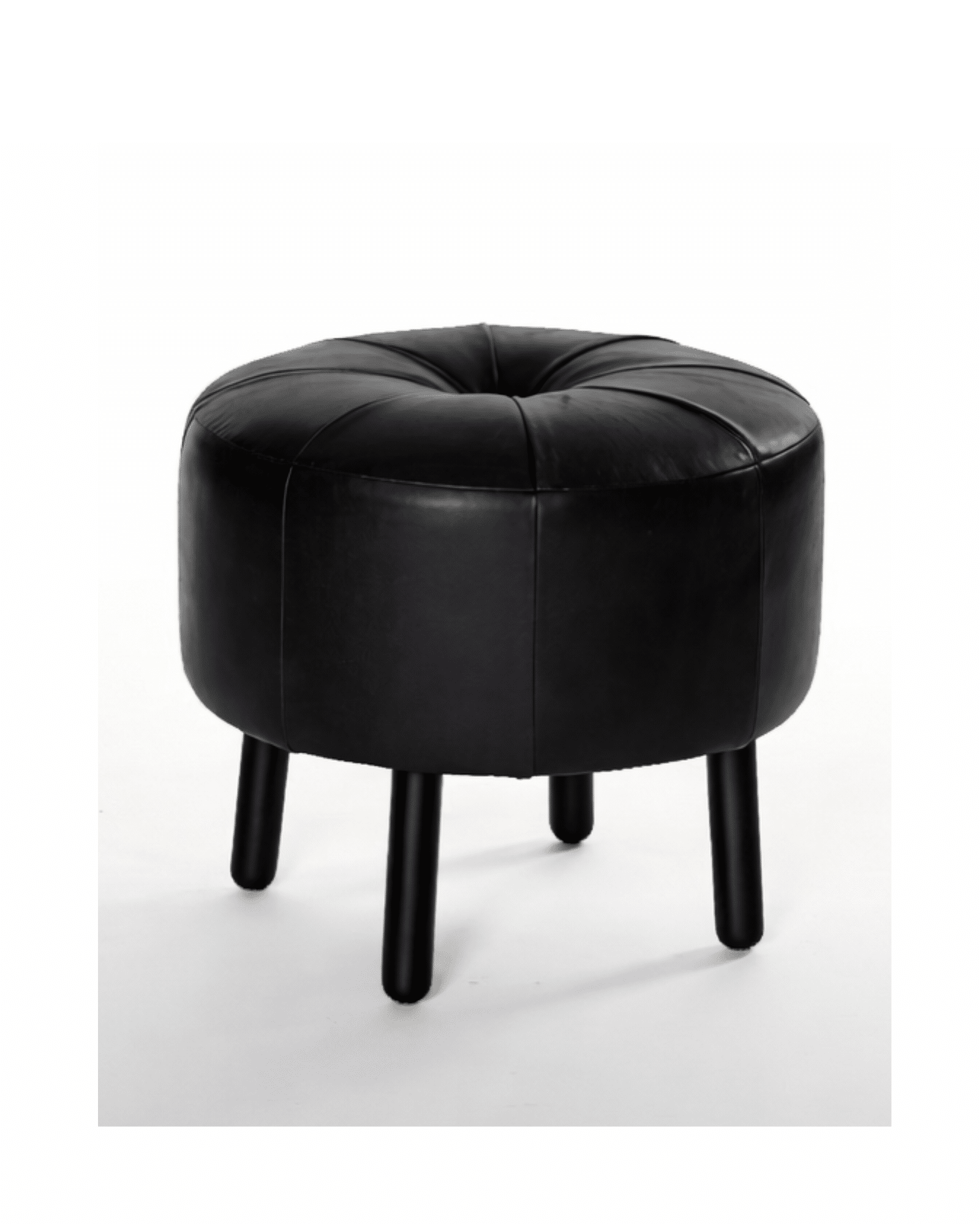 Fotpall Polly (Fat) – Svart skinn med svarta ben från HomeLine