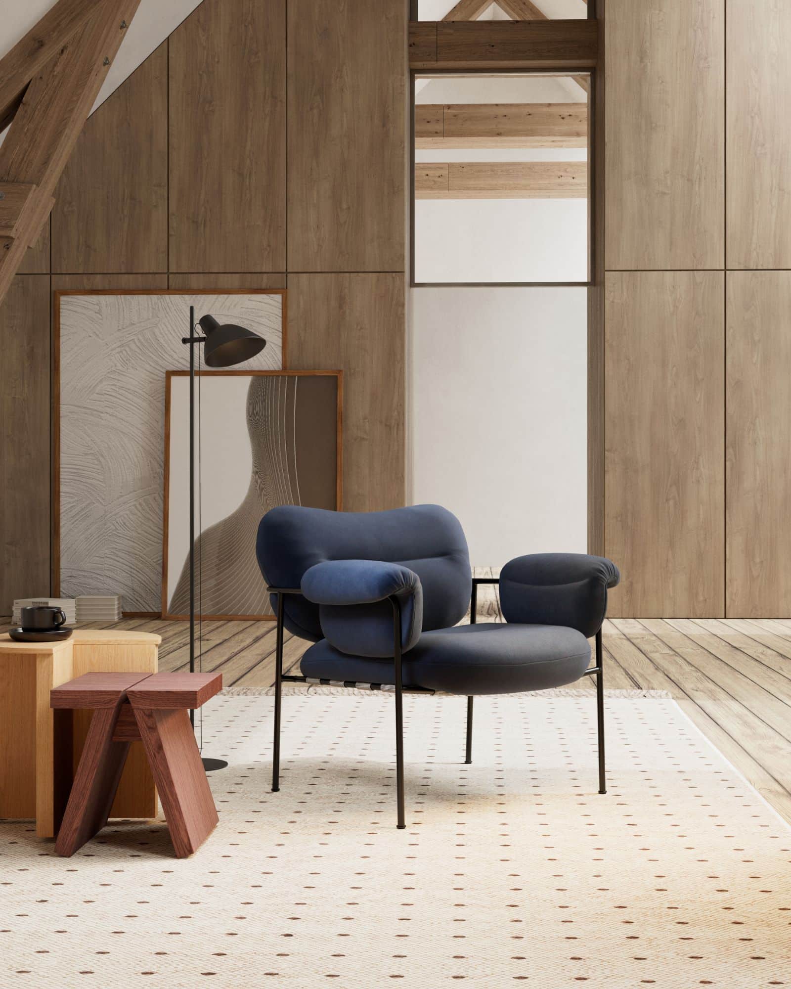 Fogia Bollo Lounge Megan Navy är en modern designklassiker som kombinerar skandinavisk enkelhet med maximal komfort. Inspirerad av 50-talets loungestolar med sina karakteristiska rörformade stålramar, lyfter Bollo designen till en ny nivå genom att omfamna ramen med generöst stoppade kuddar – ett möte mellan stram arkitektur och mjuk ombonad känsla.