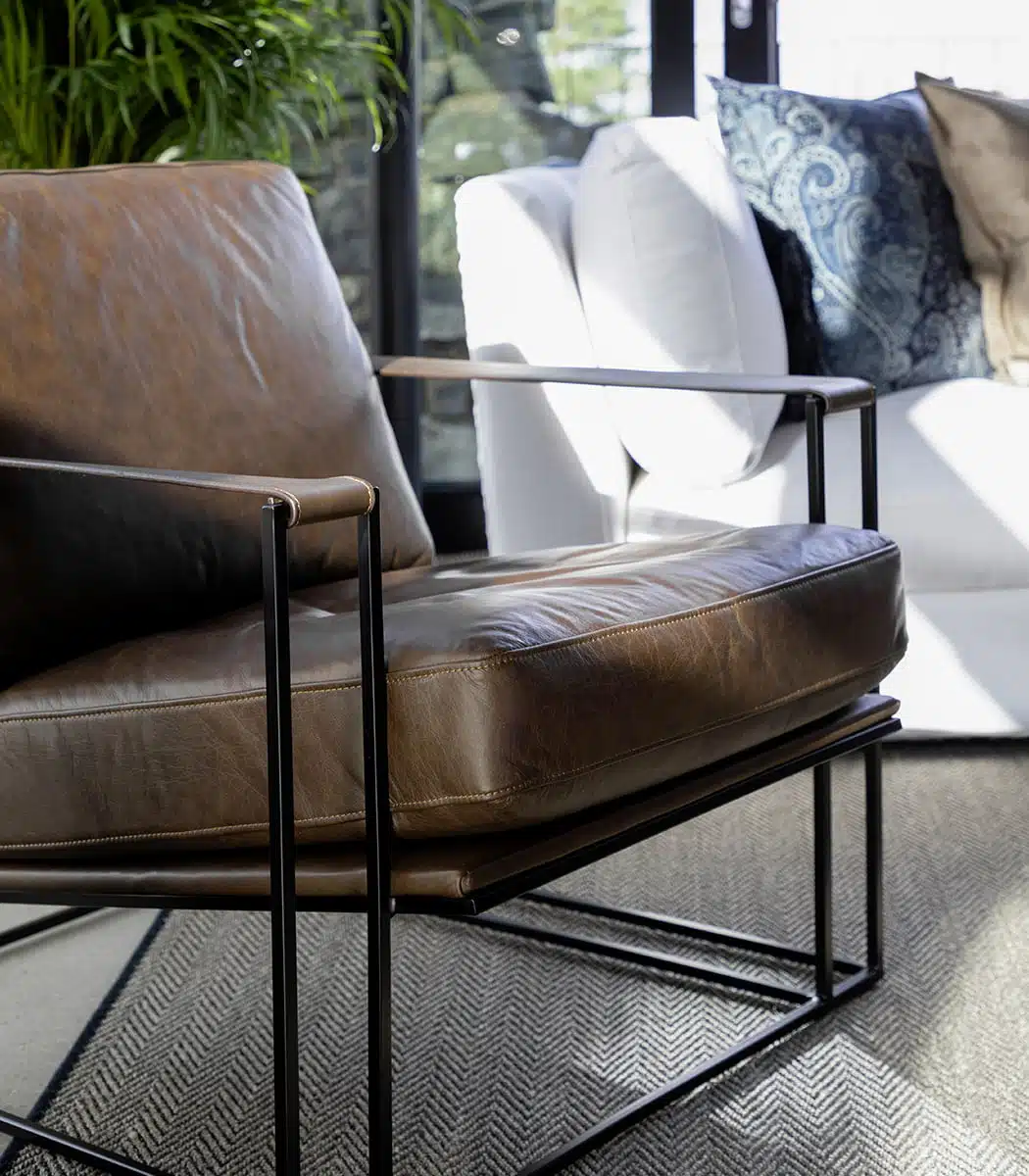 Vidare upplever du en stabil och stilren konstruktion tack vare den svarta metallstommen och det robusta hantverket. Kombinationen av läder och metall ger en modern, lätt industriell känsla samtidigt som designen smälter in i både klassiska och samtida interiörer. Samtidigt erbjuder fåtöljen en förvånansvärt mjuk komfort som gör den idealisk för kvällar med avkoppling och vila.