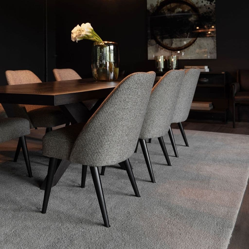 De snyggt formade benen i svart bokträ kompletterar stolens stilrena design och skapar ett sofistikerat uttryck som passar de flesta inredningsstilar, från skandinaviskt minimalistiskt till klassiskt elegant.