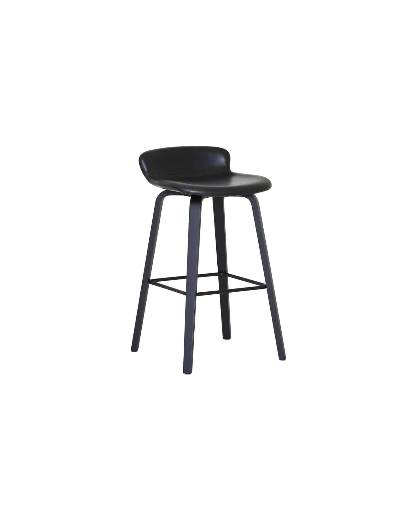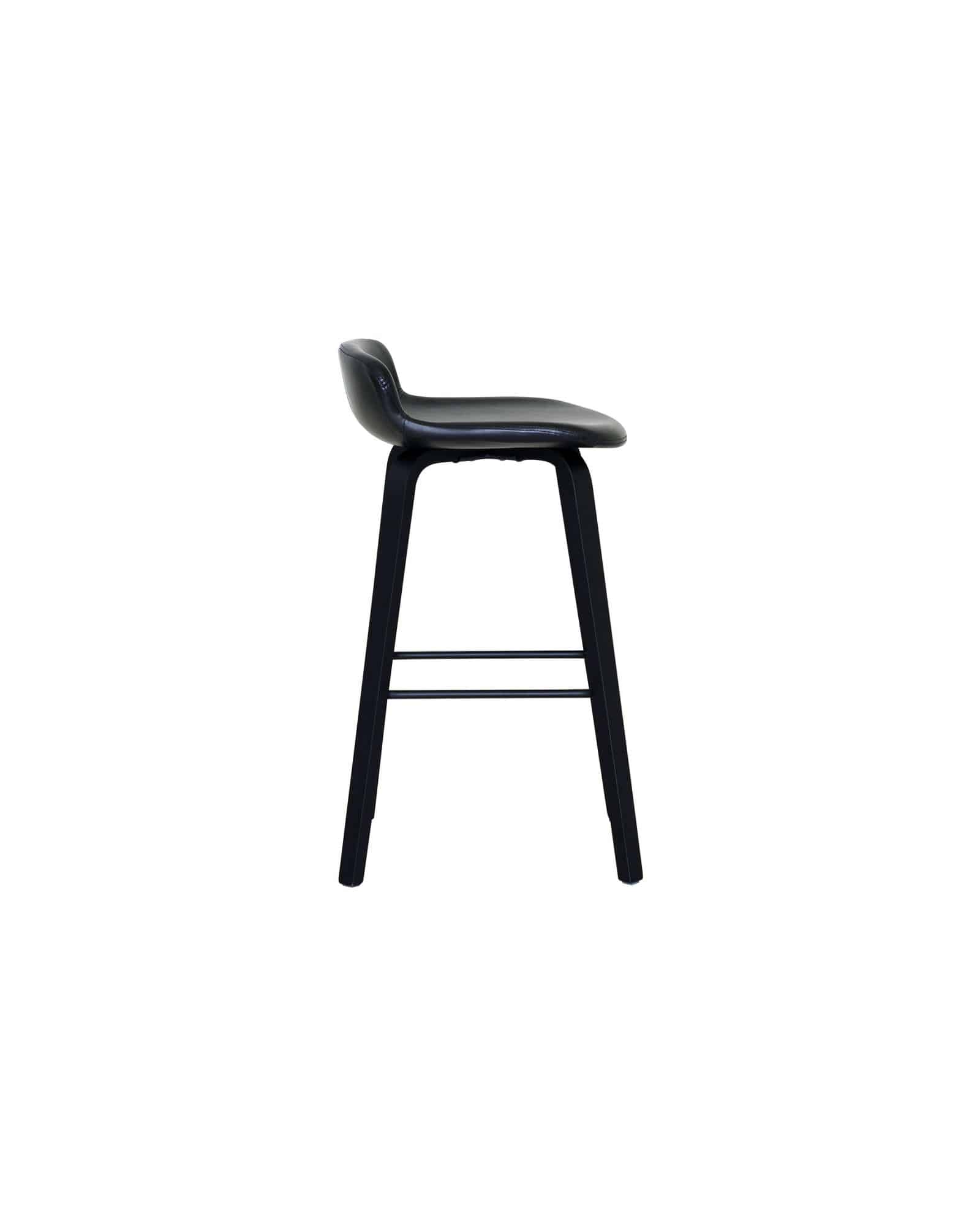 AKI barstol i svart PU med svart underrede har en modern och stilren design som passar perfekt vid köksöar och barbord. Den bekväma sitsen tillsammans med den stabila metallstommen gör stolen både funktionell och hållbar för daglig användning.