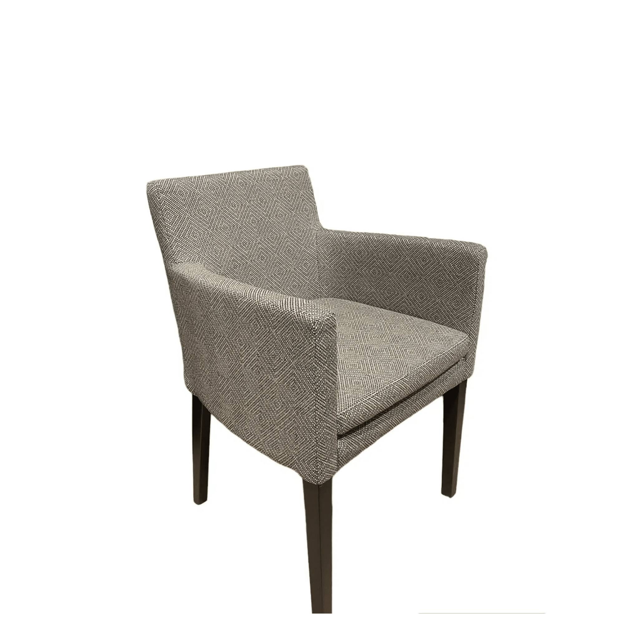 Stolen har raka armstöd och en vändbar dyna som ger extra komfort och möjlighet till längre livslängd. Den nätta designen gör den lättplacerad, samtidigt som den erbjuder ett stadigt och stilrent intryck.