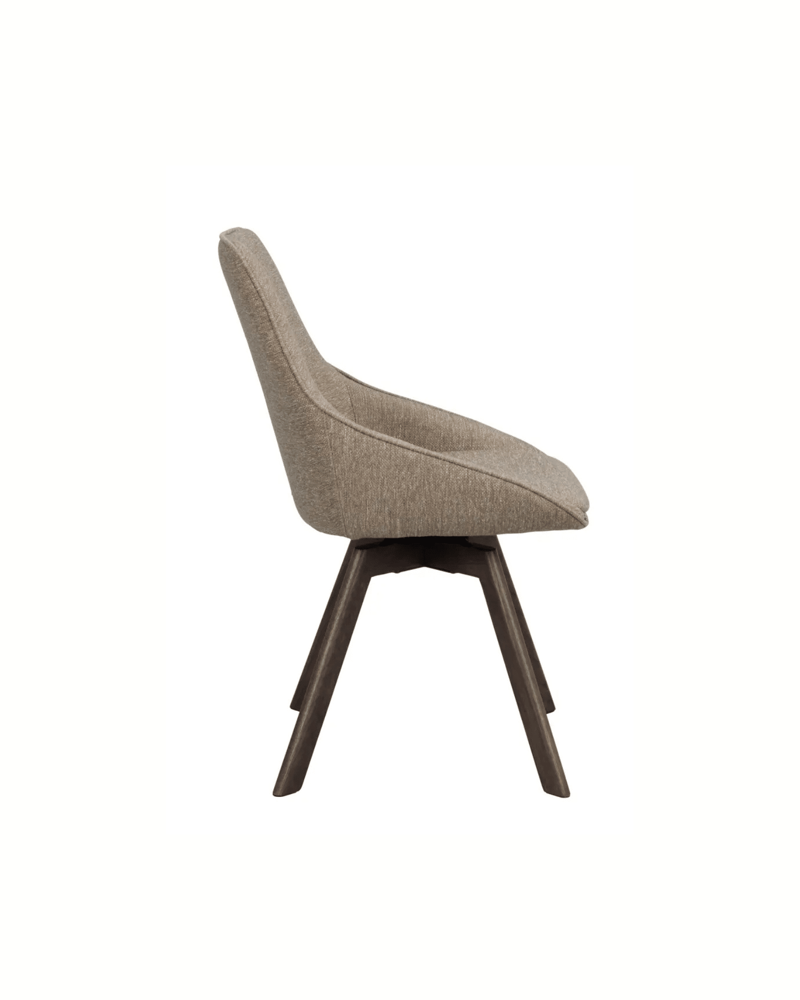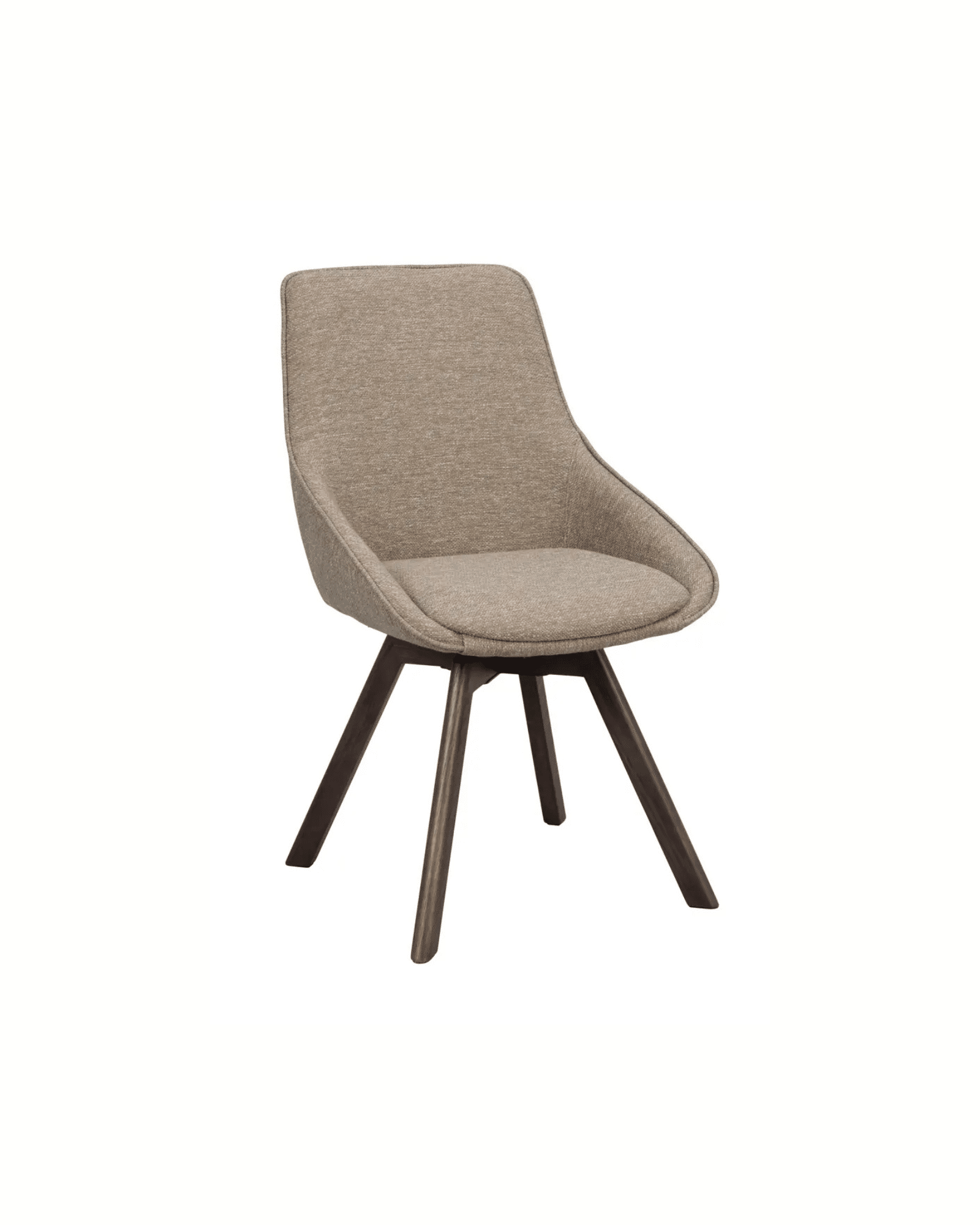 Alison stol mörkbeige brun är en stilren och bekväm stol med stoppad sits och kupad design som ger hög sittkomfort. Benen är tillverkade i massiv FSC®-certifierad ek och har en praktisk snurrfunktion på 360 grader, vilket gör stolen flexibel och lätt att använda runt matbord eller skrivbord.