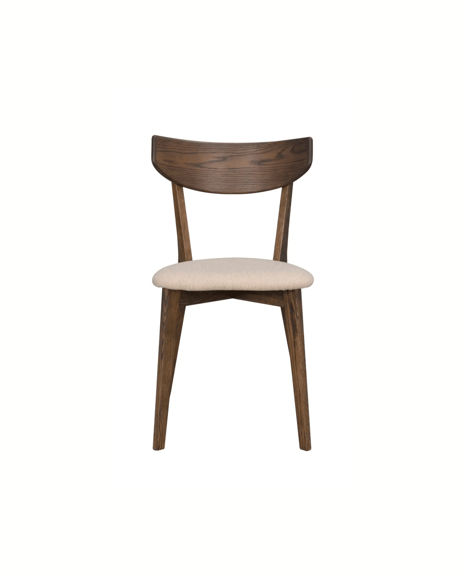 Rowico Ami stol brun beige är en stilren och tidlös trästol som kombinerar design och komfort. Stommen är tillverkad i massiv brunlackad ek, vilket ger stabilitet och en varm, naturlig ton. Sitsen är klädd i slitstarkt polypropylentyg i beige, vilket gör stolen både bekväm och lätt att underhålla.
