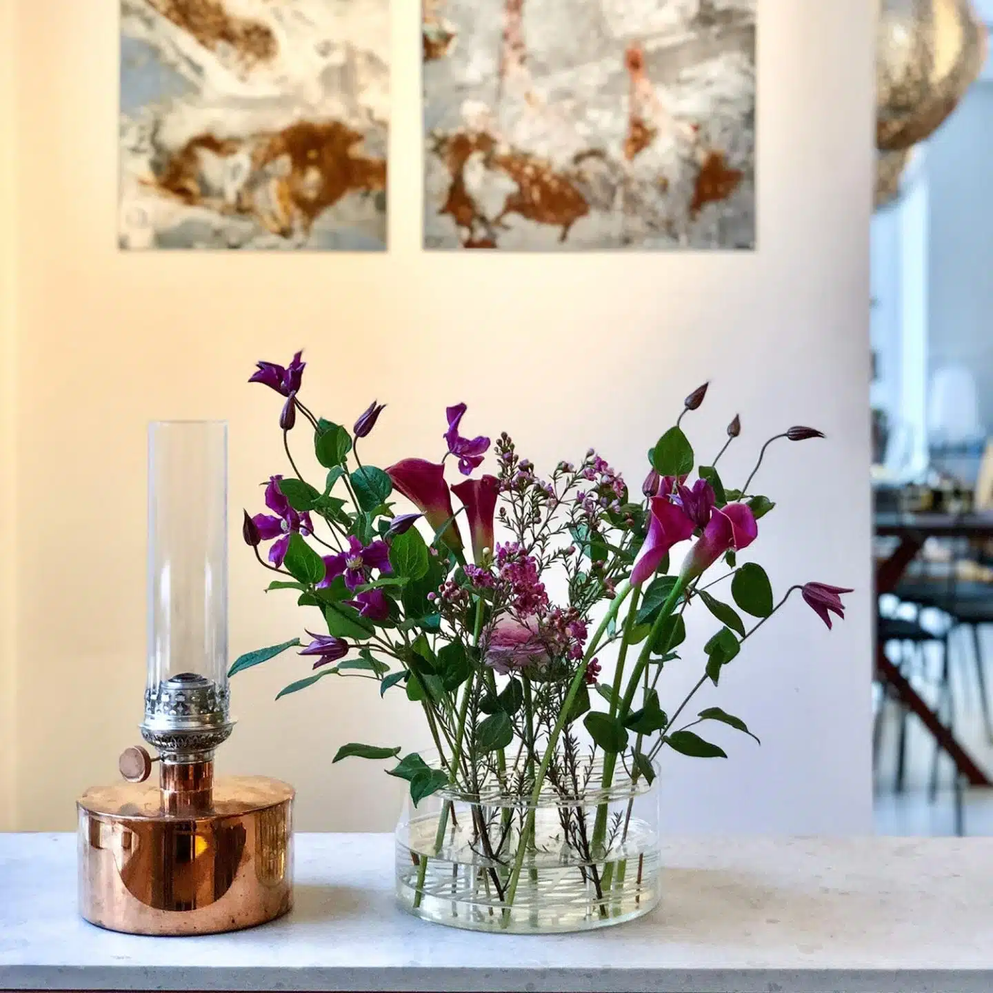 Material: Mässing med koppar- eller lackerad yta, Glas, Förnicklad brännare