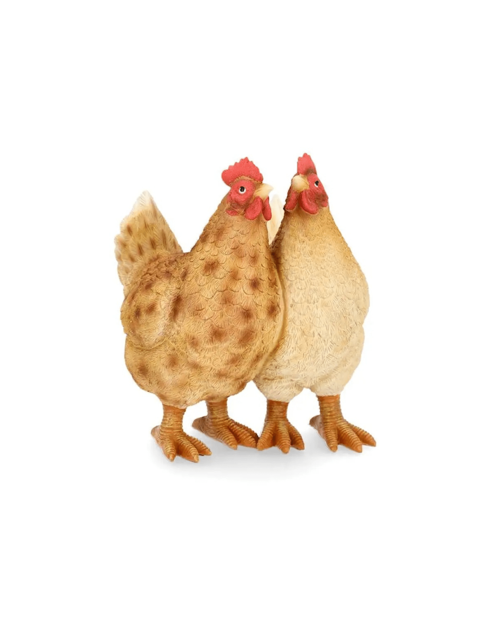 Dekoration Hönsduo består av två detaljerade hönor tillverkade i poly, som står stadigt och ger ett naturligt och lekfullt uttryck. På så sätt blir dekorationen både dekorativ och rolig, samtidigt som den sprider påskkänsla i hemmet. Tack vare den bruna färgen smälter figurerna snyggt in i både klassiska och moderna inredningsmiljöer.