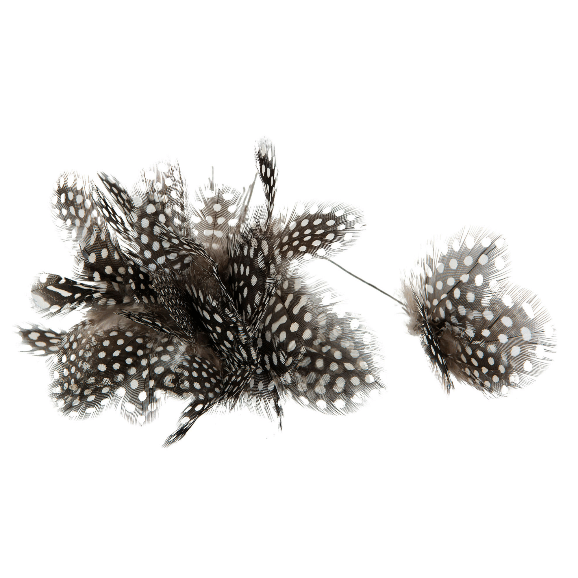Vackra fjädrar i färgen ”pärlhöns” som är en mörkbrun färg med vita prickar, perfekt att pynta påskriset med.