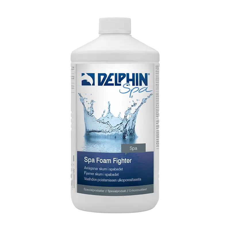 DELPHIN SPA Foam Fighter löser upp skum på vattenytan. Spreja medlet direkt på skummet, flytande med sprejmunstycket. Om du ofta har skum är det bra att veta att det kan bero på fel pH-värde i ditt vatten, alternativt kan en chockklorering hjälpa. Har du ofta eller kraftig skumbildning rekommenderar vi att byta allt eller delar av vattnet. Förpackningen innehåller 1 liter flytande medel som du doserar direkt i badvattnet.