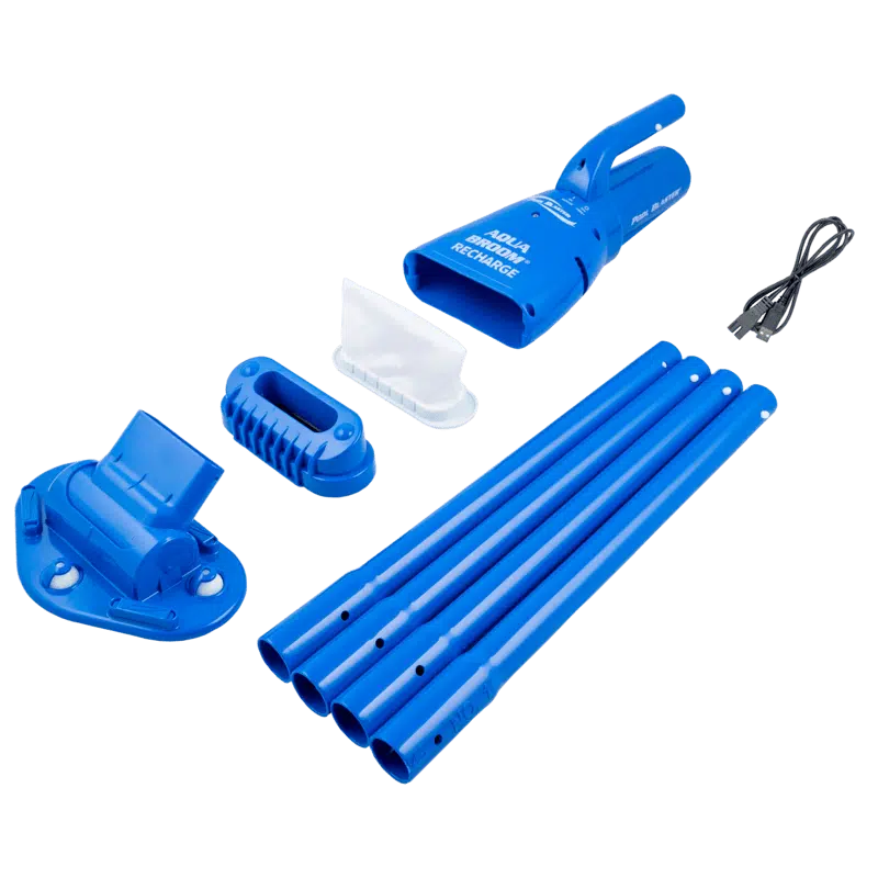Poolblaster Aqua Broom Recharge har samma goda egenskaper som Aqua Broom men kompletterad med laddningsbart batteri. Tar snabbt bort allt skräp, löv, sand och alger.