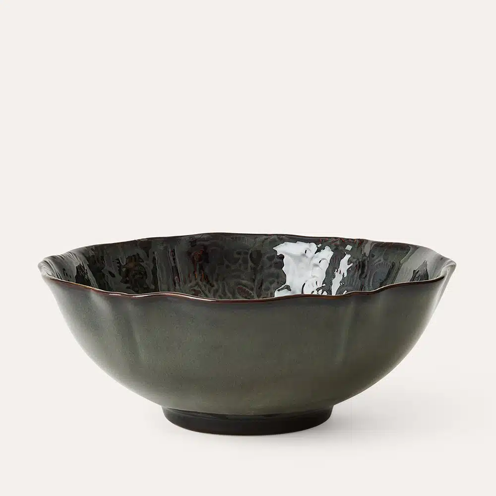 En skål för sallad och så mycket mer. Den här härliga fikonbruna skålen hör hemma överallt. I den blir all mat vacker och man kan inte annat än njuta. Den öppna vida formen och den härliga storleken gör att den älskas direkt. Skålen är en del av Sthåls kollektion Arabesque, det framgår av det vackra mönstret som tecknar sig på in- och utsidan. Fikonbrun är en så kallad effektglasyr med små fina krackeleringar som ger liv och variation åt keramiken. Den flödande glasyren skapar en livfull yta med skiftande färgtoner vilket gör varje exemplar unik.