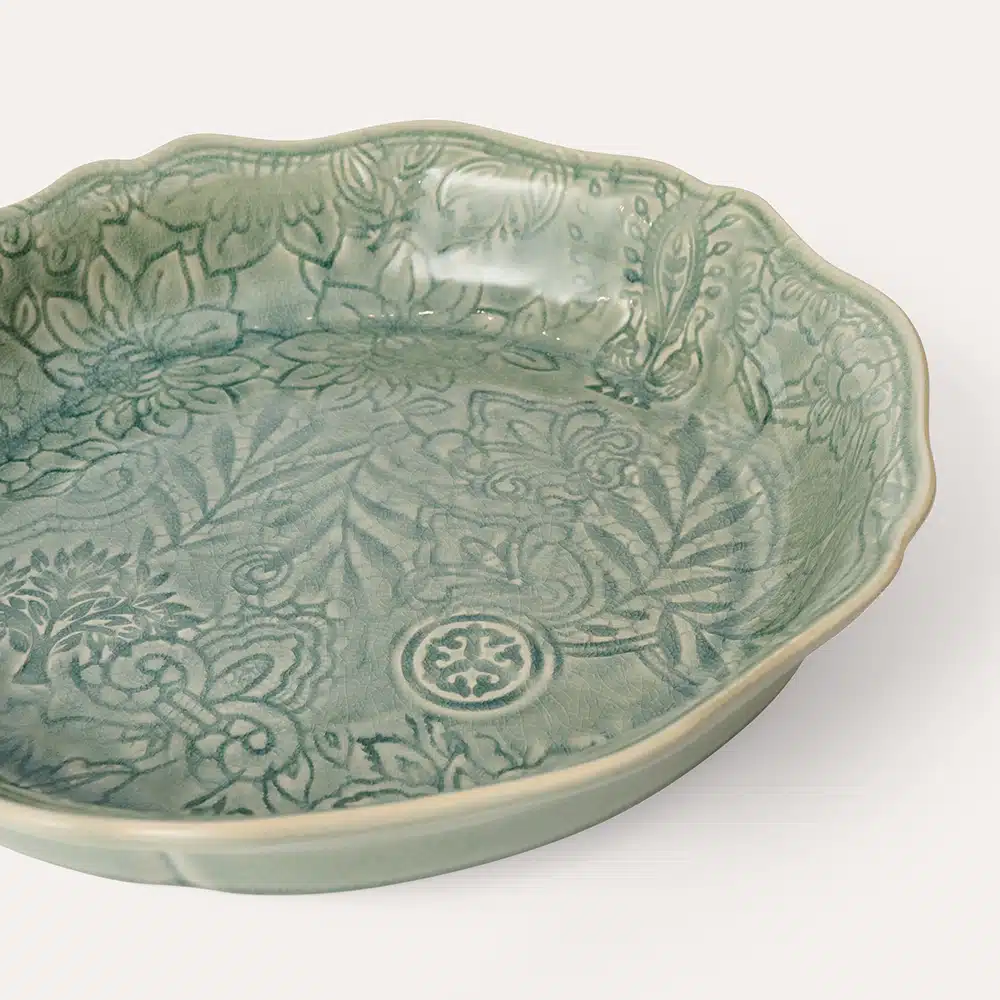 Sthål pajform Antique 25×5 cm, en festlig keramikfavorit i antikgrönt