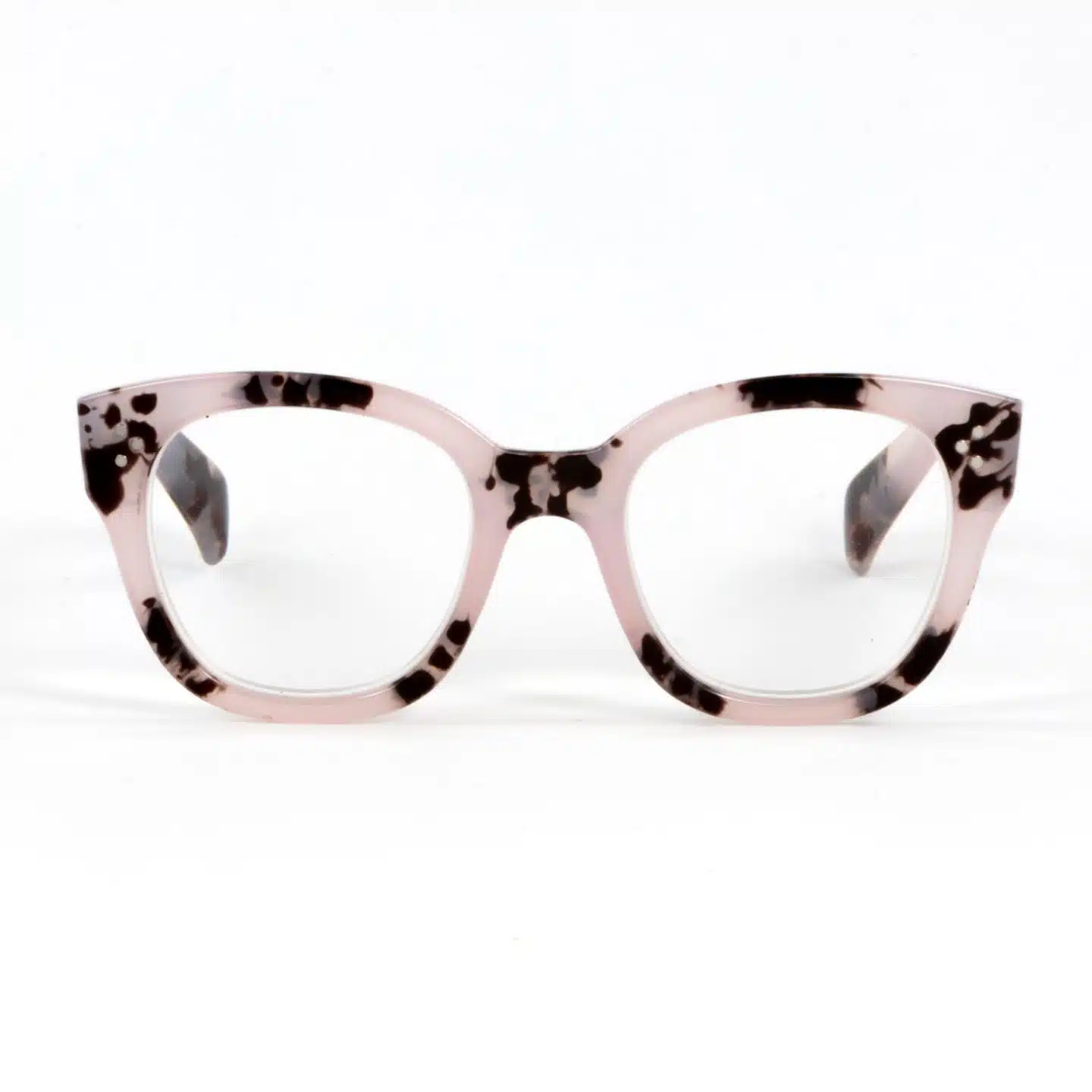Glasögonen levereras i ett snyggt rosa fodral med tillhörande putsduk
