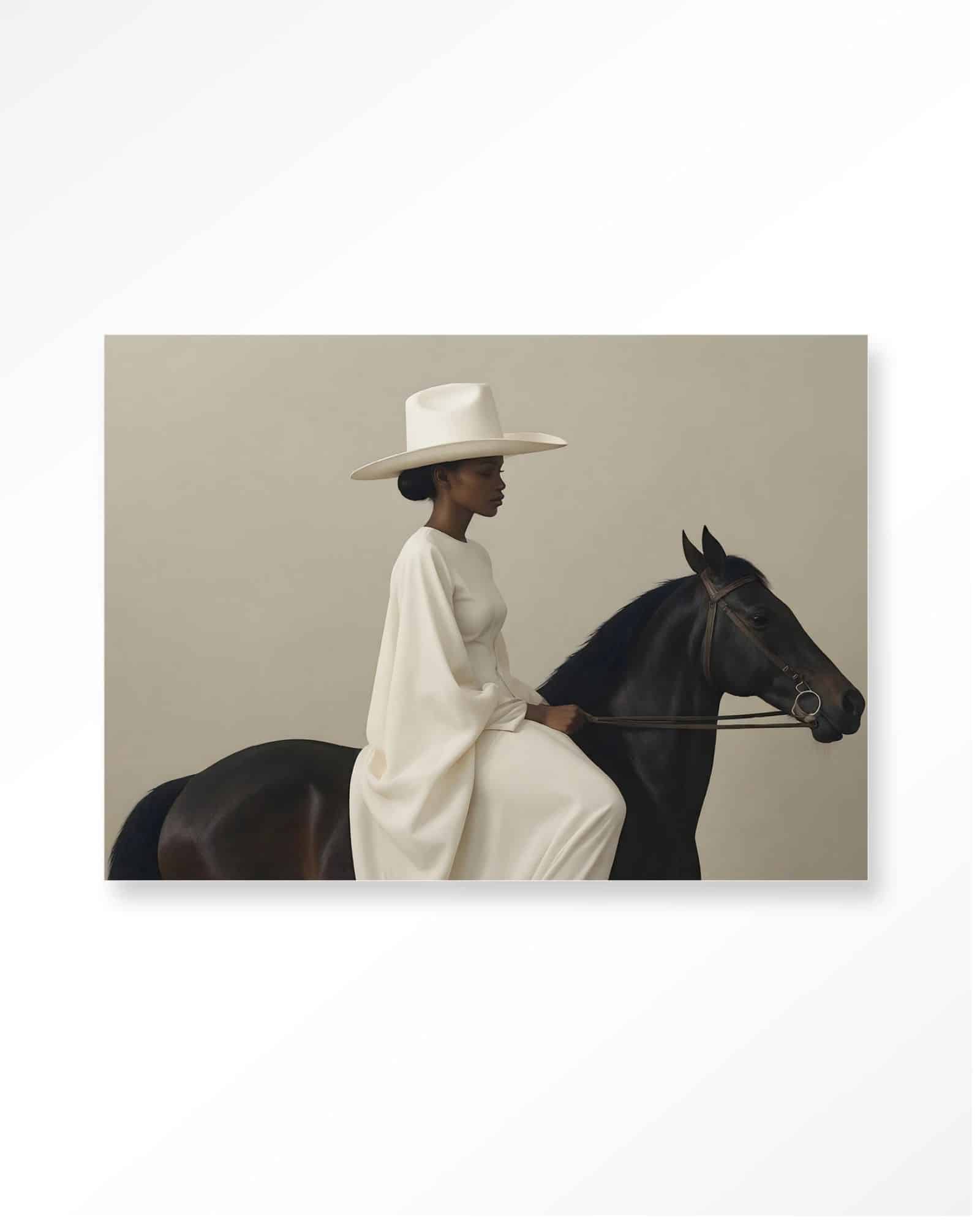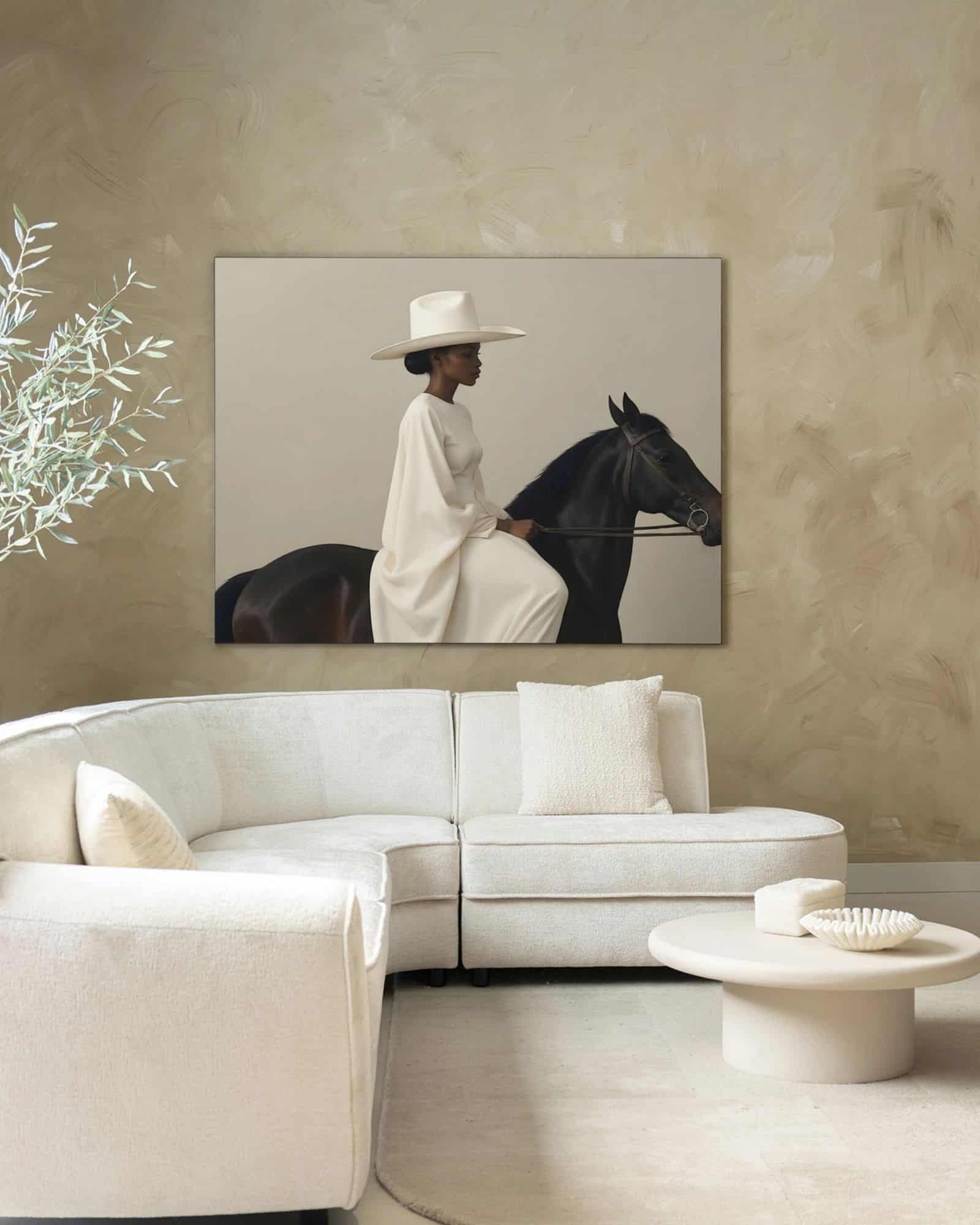 Tavla Beige Rider 110×145 cm med svart ram