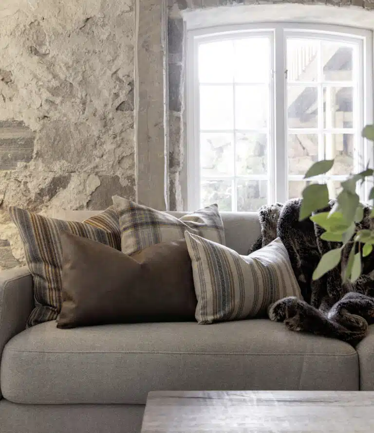 Kuddfodral i ull med vävt randigt mönster från Artwood. Mjukt och bekvämt med enfärgad baksida i tyget Simply Camel. Dold dragkedja i nederkant. Innerkudde ingår ej.