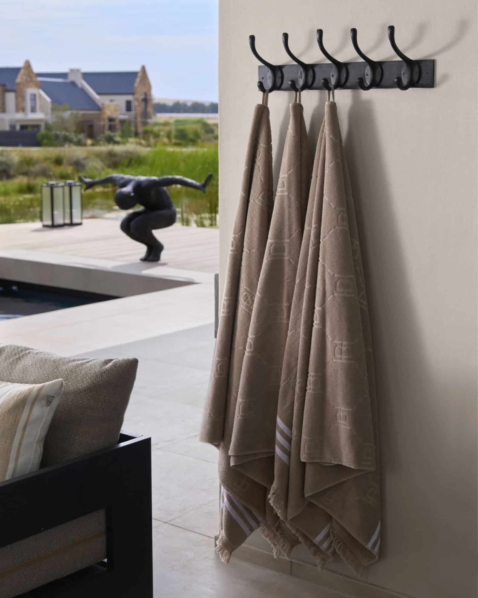 Handduken är stor nog att svepa om kroppen, men ändå smidig att rulla ihop och packa i väskan – perfekt för båtturen, stranden eller ett kvällsdopp under stjärnorna. Jacquardväven ger både styrka och struktur, samtidigt som de långa bomullsfibrerna minimerar luddbildning och bevarar mjukheten även efter många tvättar.