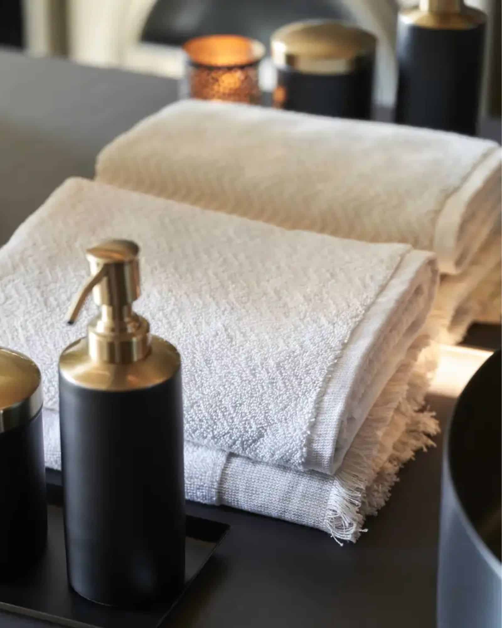 Verbier handduken mäter 70×140 cm och finns även i storleken 50×70 cm. Den ingår i Halvor Bakkes kollektion Bedtime Story, som kombinerar stil, kvalitet och praktiska detaljer. Den mjuka känslan, jacquardmönstret och den neutrala färgen gör handduken till ett elegant tillskott i badrummet, både som vardagshandduk och som del av en vacker present.