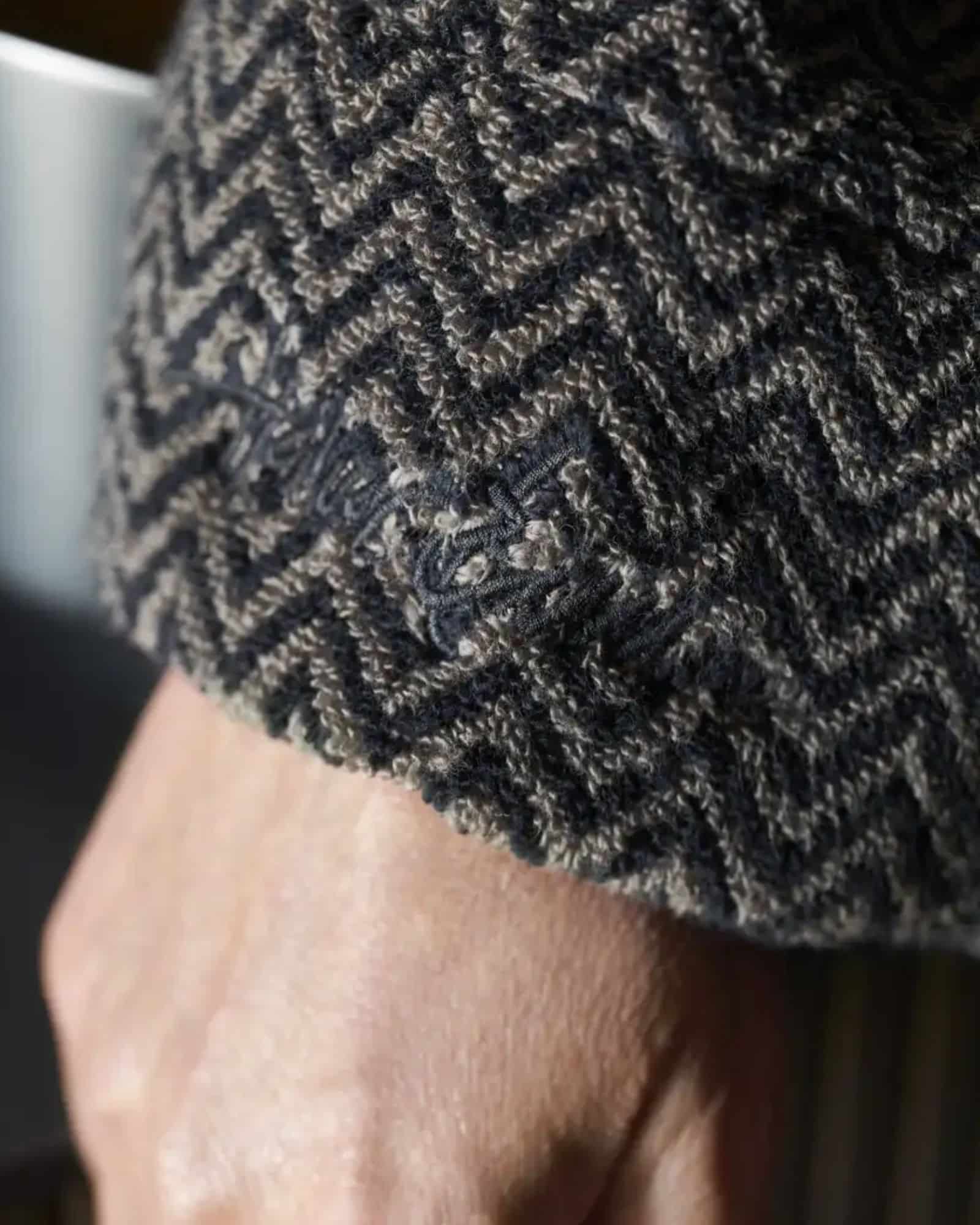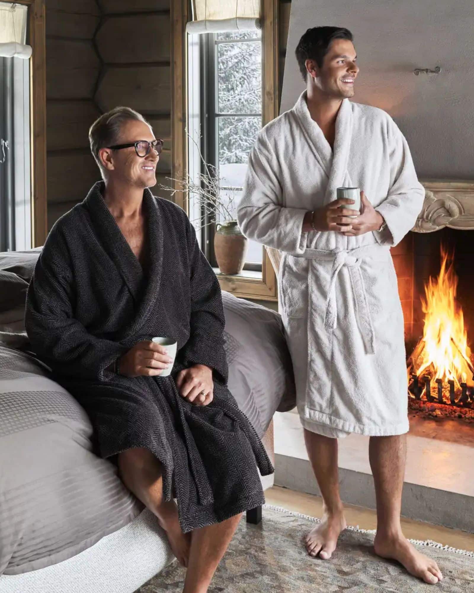 Den är vävd i zero-twist-garn, vilket ger både hög absorption och slitstark kvalitet. Dessutom skapar det subtila ton-i-ton fiskbensmönstret liv och djup i textilen, vilket gör badrocken både elegant och dekorativ. Den varma beige färgen följer höstens palett och passar utmärkt tillsammans med andra produkter från Halvor Bakke, som Clifton och nyheten La Grave.