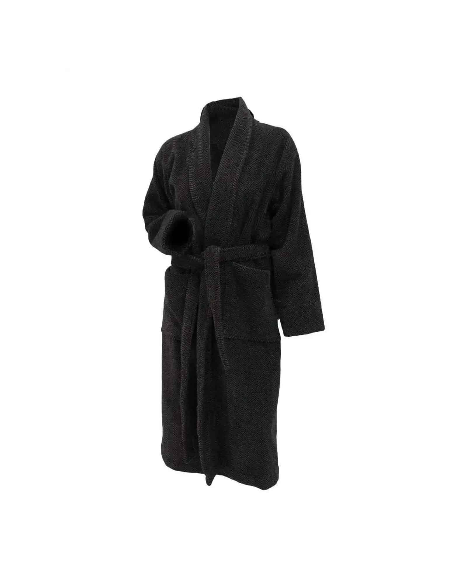 Halvor Bakke Verbier badrock svart S/M. Halvor Bakke Verbier badrock svart S/M är en lyxig och mjuk badrock i 100 % garnfärgad bomullsfrotté. Den jacquardvävda designen är samma som i Verbier-handdukarna, vilket gör det enkelt att matcha badrock och handduk för en komplett badrumsstil. Badrocken känns supersoft mot huden och ger en skön känsla redan vid första användningen.