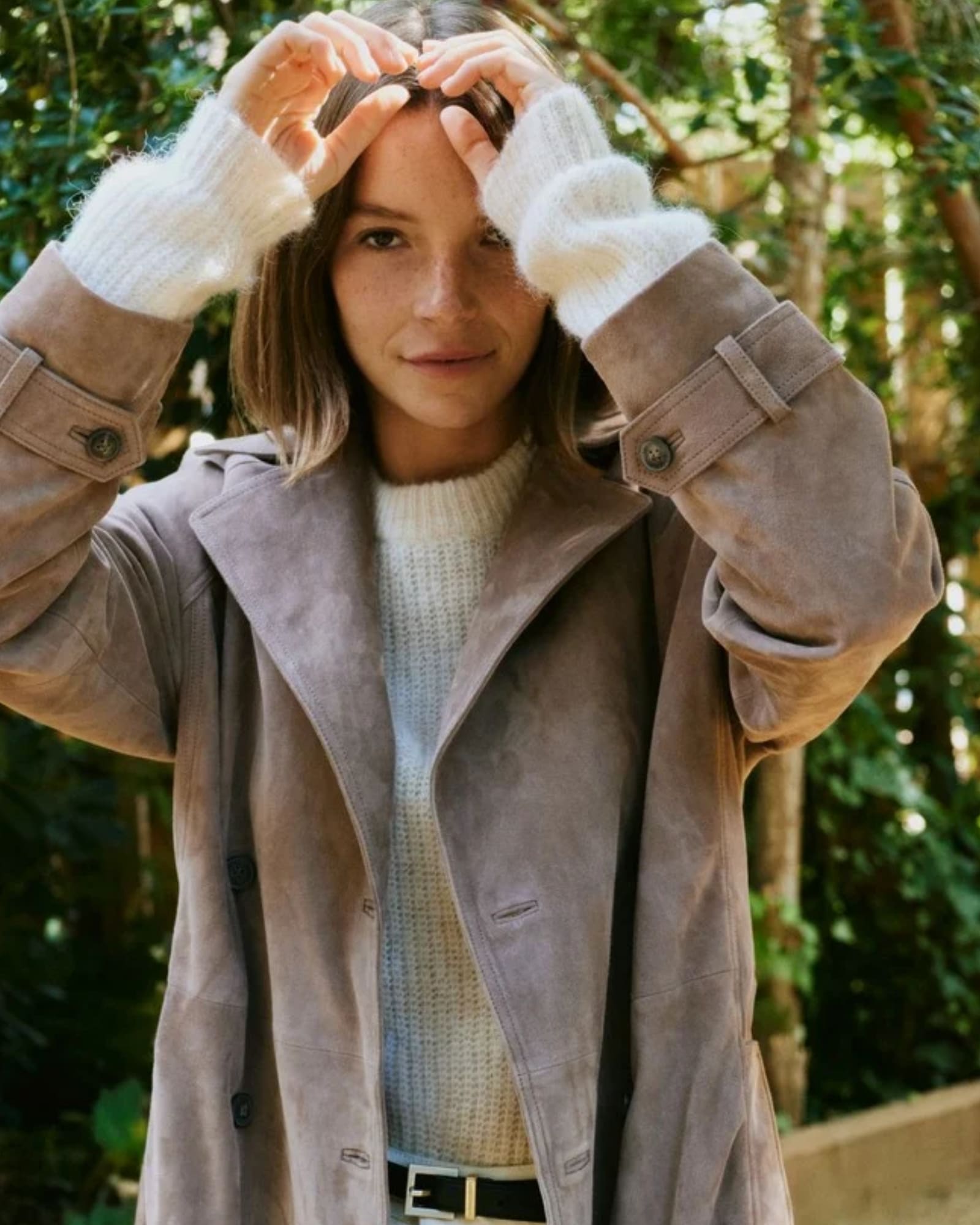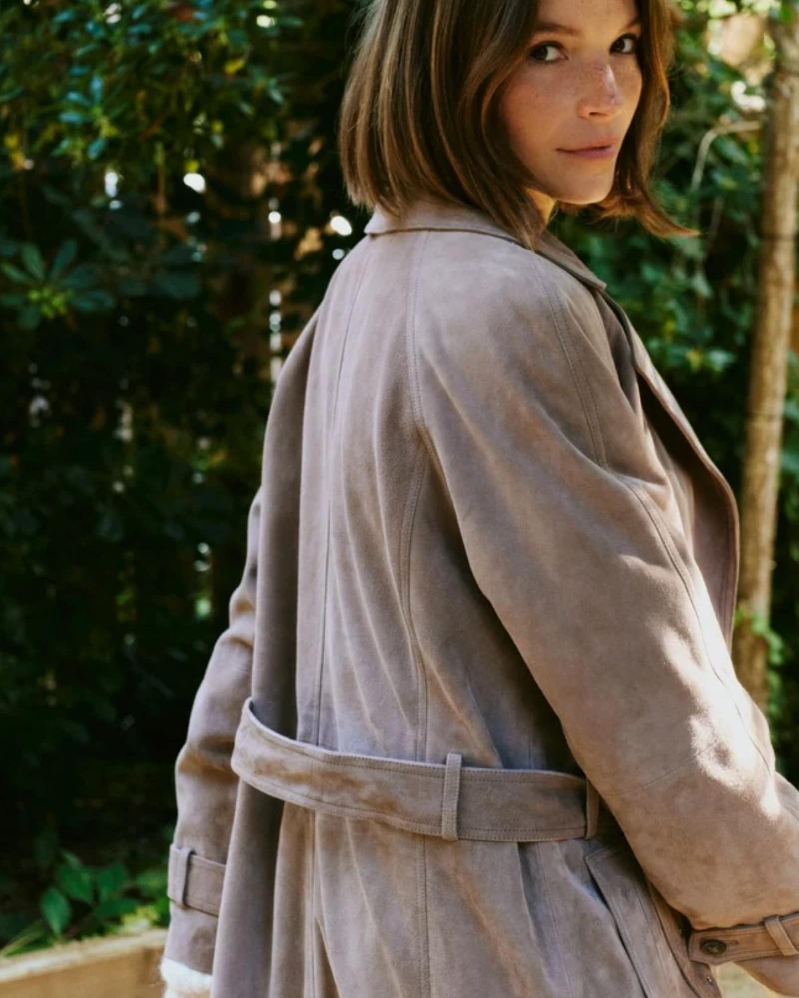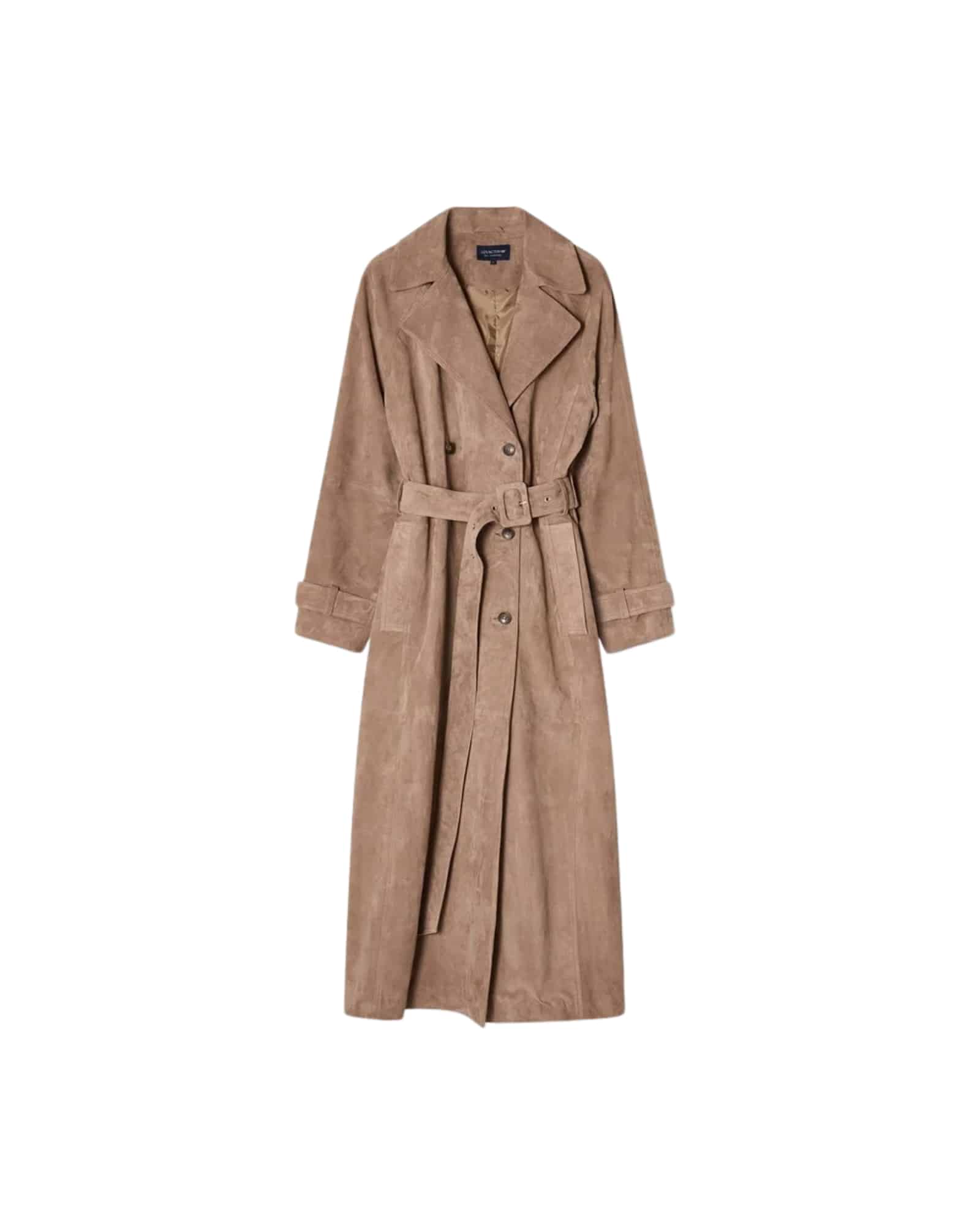 Denna mocka trenchcoat passar lika bra till vardags som till mer uppklädda tillfällen. Därför kan du enkelt bära den över jeans och stickat för en avslappnad look, eller kombinera den med skräddade plagg för ett mer elegant uttryck. Den mellanbruna färgen gör kappan lätt att matcha med både ljusa och mörka toner.