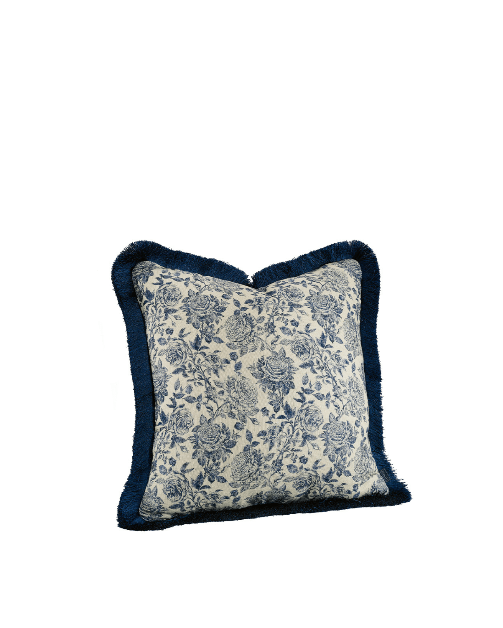 Artwood Rosario Kuddfodral Indigo – klassiskt blommönster med elegant frans