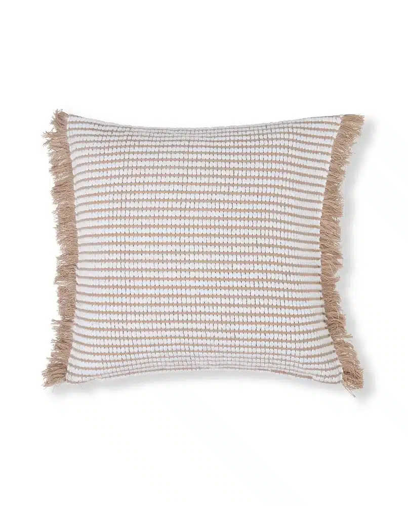 Kuddfodralet har en fin frans på två sidor. Det ger en dekorativ och avslappnad look.