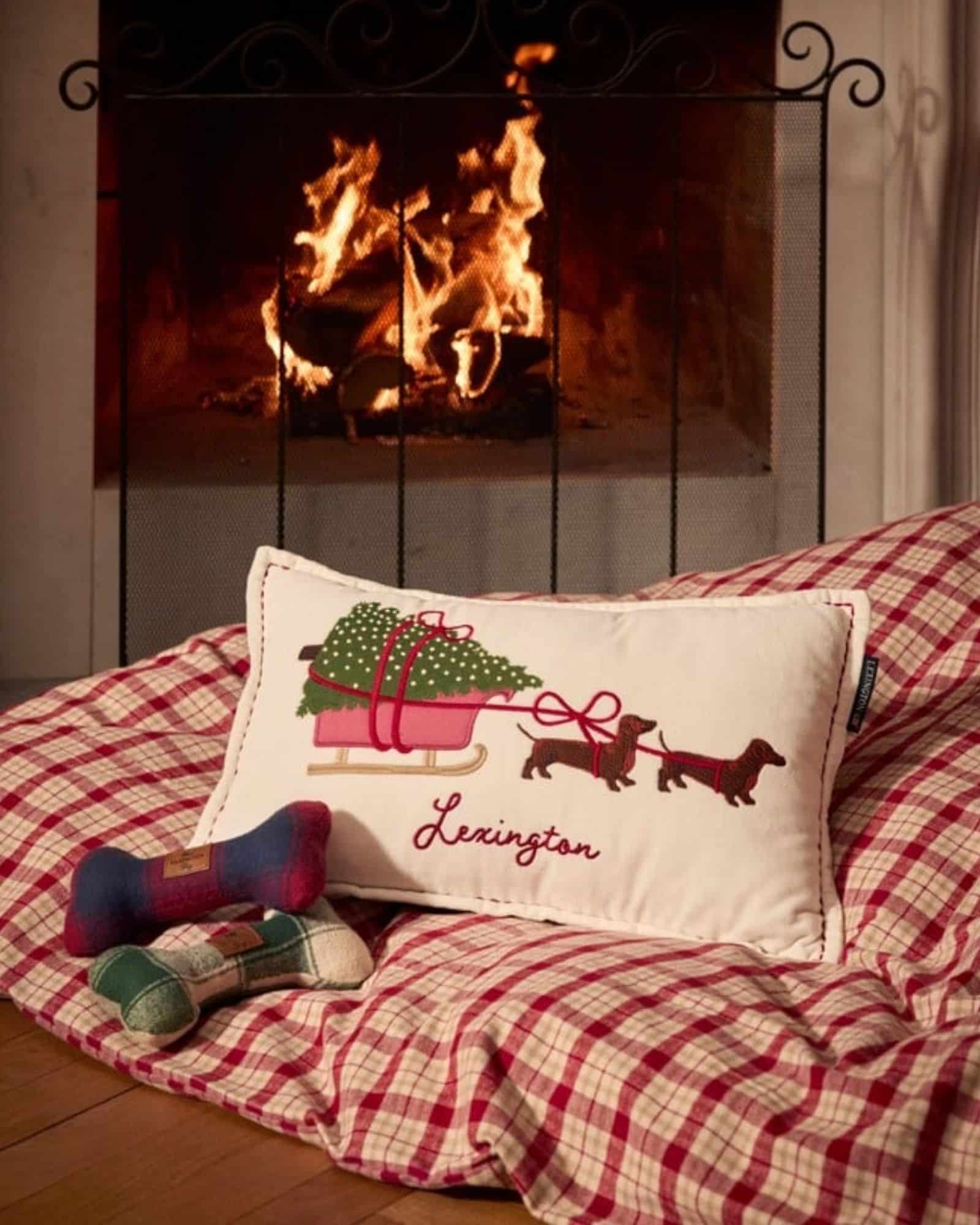 Bjud in säsongens lekfulla charm med Lexingtons Dog Sleigh-kudde – en vinterfavorit som kombinerar elegant design med miljömedvetna material. Den är tillverkad av superlen ekologisk bomullssammet, vilket ger en lyxig men inbjudande känsla. Kudden pryds av en broderad originaldesign på framsidan, som fångar vintertidens glädje med en charmig hundslädesillustration.
