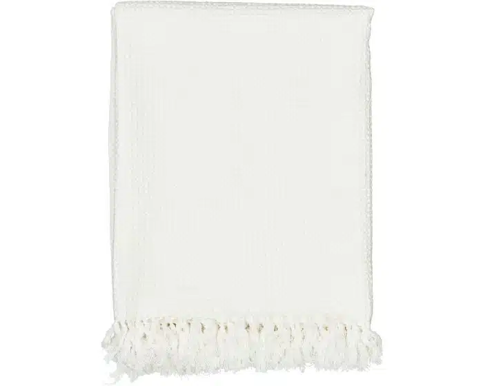 Pläd i mjuk bomull med våfflad kvalitet. Pläden har fransar utmed kortsidorna. Mått 130x170cm. Kan krympa 7-10% vid tvätt. Produkten är certifierad enligt STANDARD 100 by OEKO-TEX®. Certifieringen garanterar att produkten är testad och fri från ämnen som kan vara skadliga för hälsan och miljön.