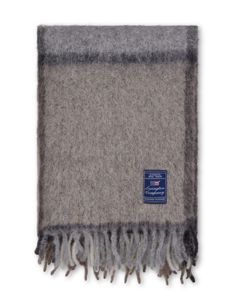 Rutigt Mohair/Ull Mix Pläd – Sten/Beige/Grå 130×170 cm