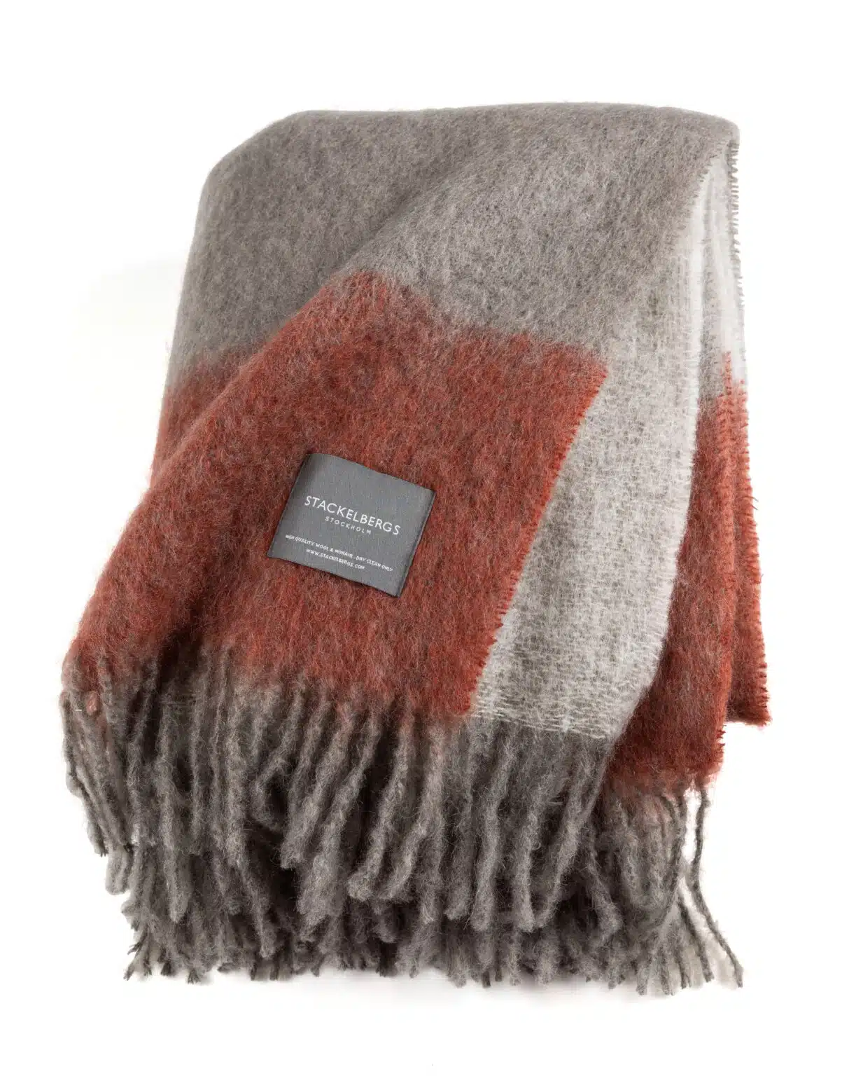 4154 Mohair Rolled fringes Brick & Brindle Melange 130 x 170 cm.