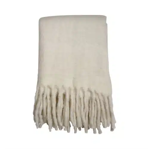 Mohair Rolled fringes Camel. 130 x 170 cm, 68 % Mohair, 28 % Ull samt 5 % Nylon.