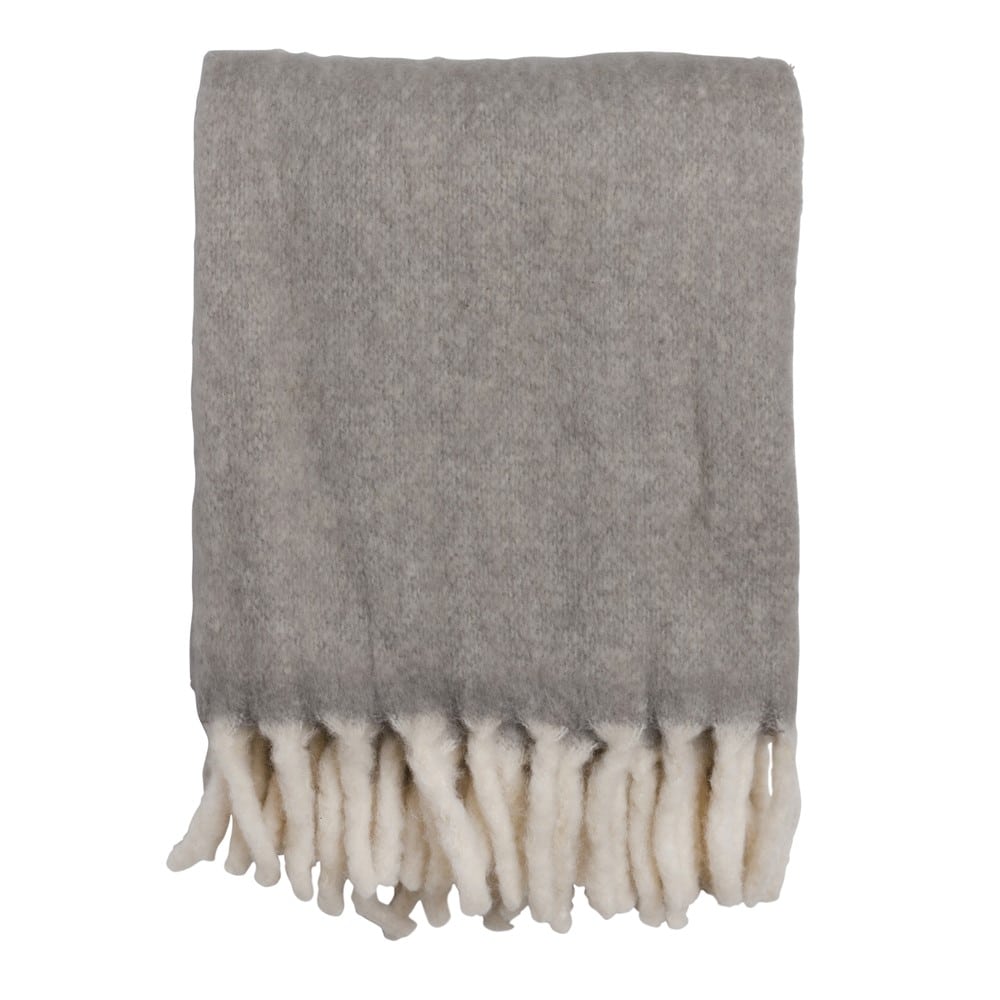 Mjuk tjockare pläd i en borstad ullblandning med fransar. 59% Ull, 26% Akryl, 15% Nylon