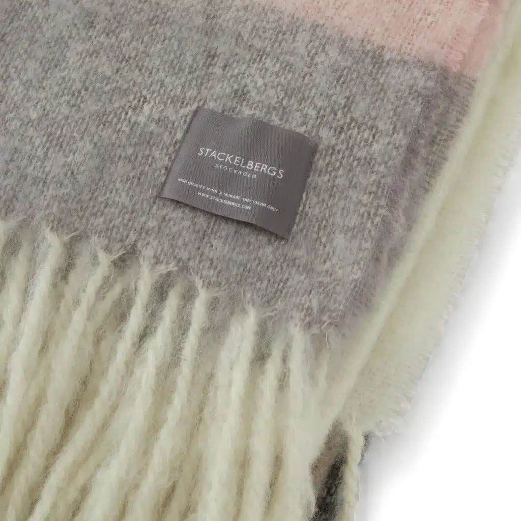 Stackelbergs Mohair Pläd Stripe Brown, Black & Rose 140 x 180 cm