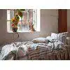 Bäddset tillverkat av en blandning av återvunnen bomull och polyester, vilket ger det både hållbarhet och en mjuk, bekväm känsla. Den har en klassisk randig design som ger en tidlös och elegant look.