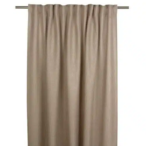 Gardinen har multiband i ovankant, fållade långsidor och overlocksöm i nederkant. Multibandet är en flexibel lösning som gör att gardinen kan hängas upp antingen med fingerkrokar, räkor eller direkt på en stång beroende på vilken typ av veck och vilket fall du vill ha.