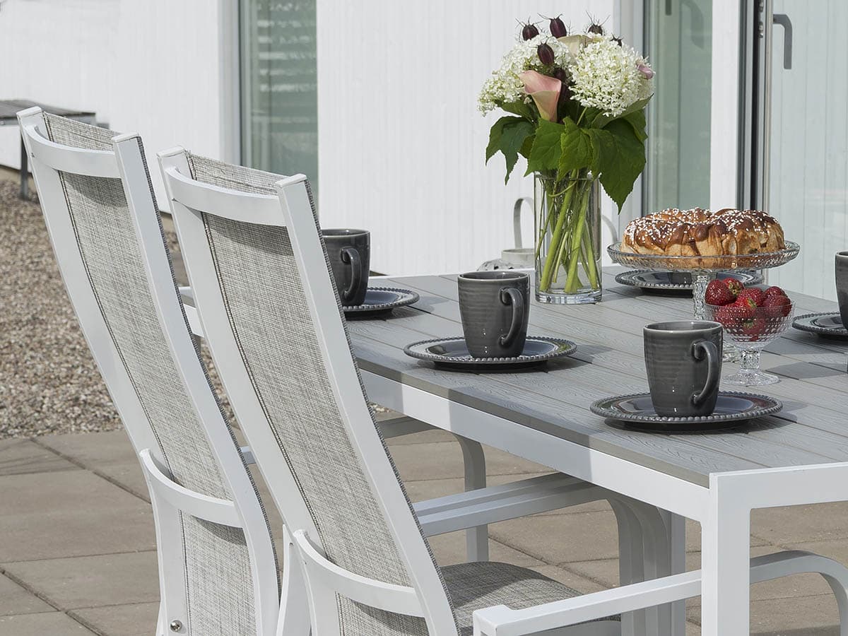 En av Hillerstorp mest säljbara stolar! Nu i en ny sober kulör. Underhållsfri positionsstol som med sin lätthet i designen skapar ett stilrent och modernt uttryck. Tillverkad i aluminium med sits- och rygg i textilene. Stolen är ställbar i olika lägen samt stapelbar.