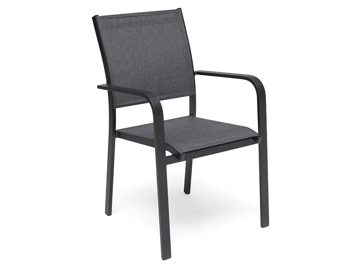 En av Hillerstorp mest säljbara stolar! Denna stol kommer i svart aluminium och grå textil. Underhållsfri stapelstol som med sin lätthet i designen skapar ett stilrent och modernt uttryck. Tillverkad i aluminium med sits- och rygg i textilene. Stolen är stapelbar för enkel och smidig förvaring.