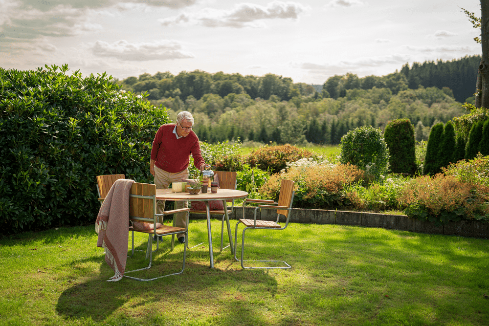 Klassisk traditionellt bord i tidlös design. Tillverkad i obehandlad FSC-certifierad teak av högsta kvalitet med stomme i varmgalvaniserad stål. Teak är ett hållbart materialval som blir vackrare för varje år som går. Teaken åldras med tiden och ger en vacker silvergrå patina.