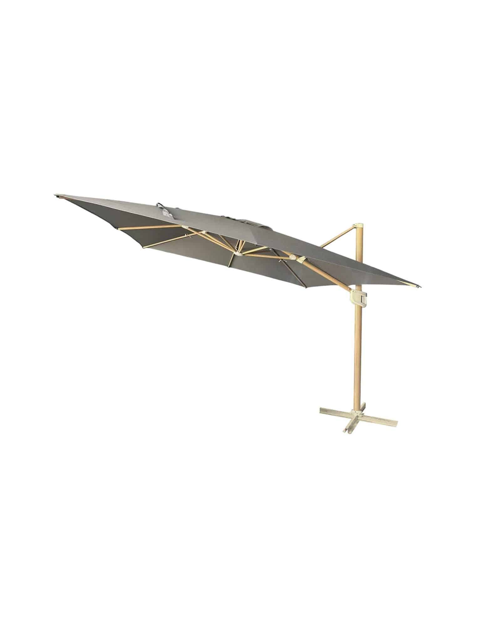 Exklusiv 3 meters fyrkantig sidewinder parasoll i gediget material som kännetecknas av hög kvalitet. Tillverkad i aluminium i trä-look utförande med tyg i olefin. Stången mäter 48 mm. Parasollet är låsbart och ställbart i olika vinklar samt roterbart runt egen axel. Del av parasollfot medföljer, komplettera med 4 st betongplatta 96425.