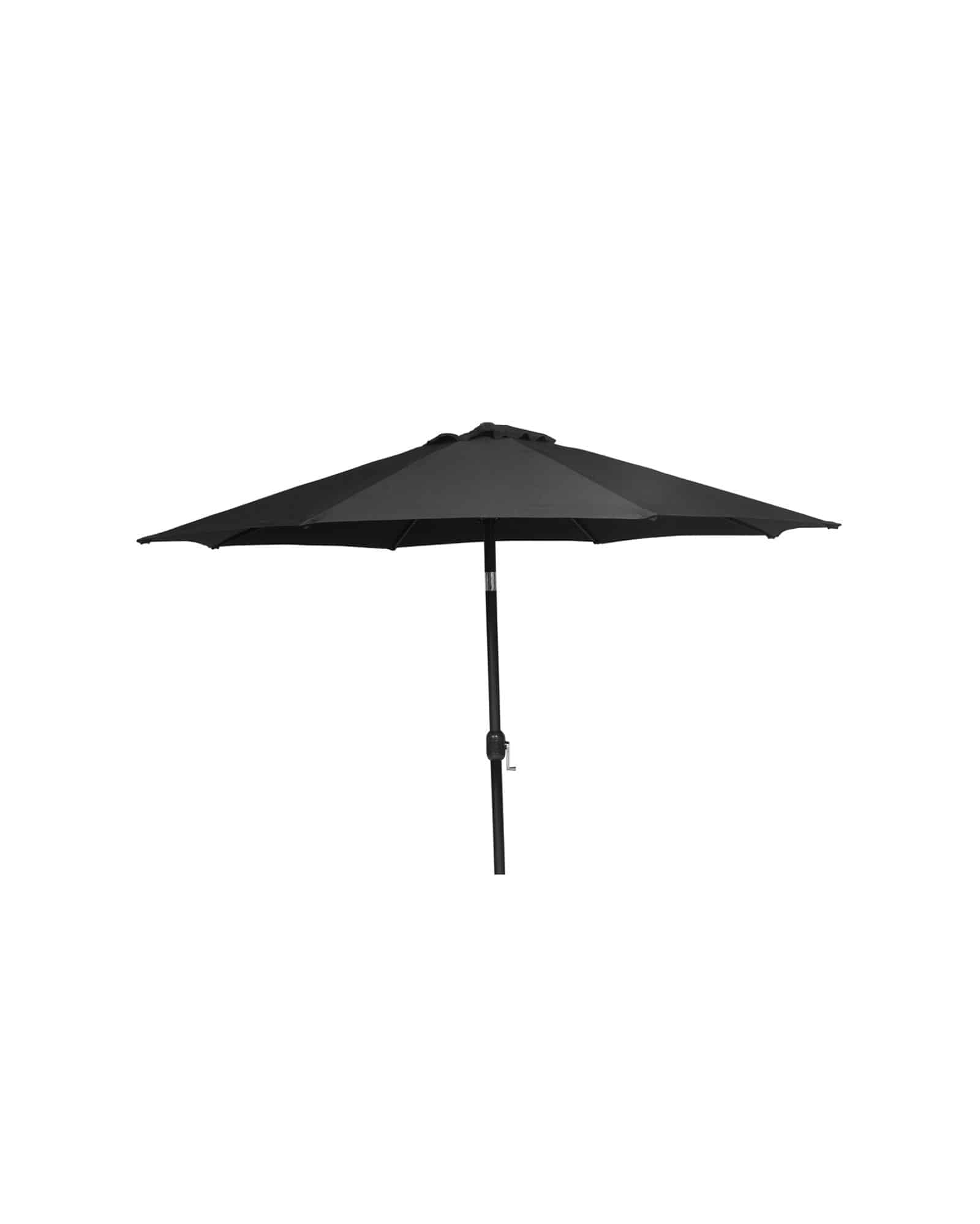 Stomme av svart aluminium och tyg av polyester. Parasollet är utrustat med vev och tilt. Veven gör det enkelt att fälla ned och fälla upp parasollet. En tilt ser till att du kan vinkla parasollet, praktiskt sent på kvällen eller tidigt på morgonen då solen står lågt. Parasoll 300 är cirka 250 cm högt. Stången är cirka 48 mm i diameter