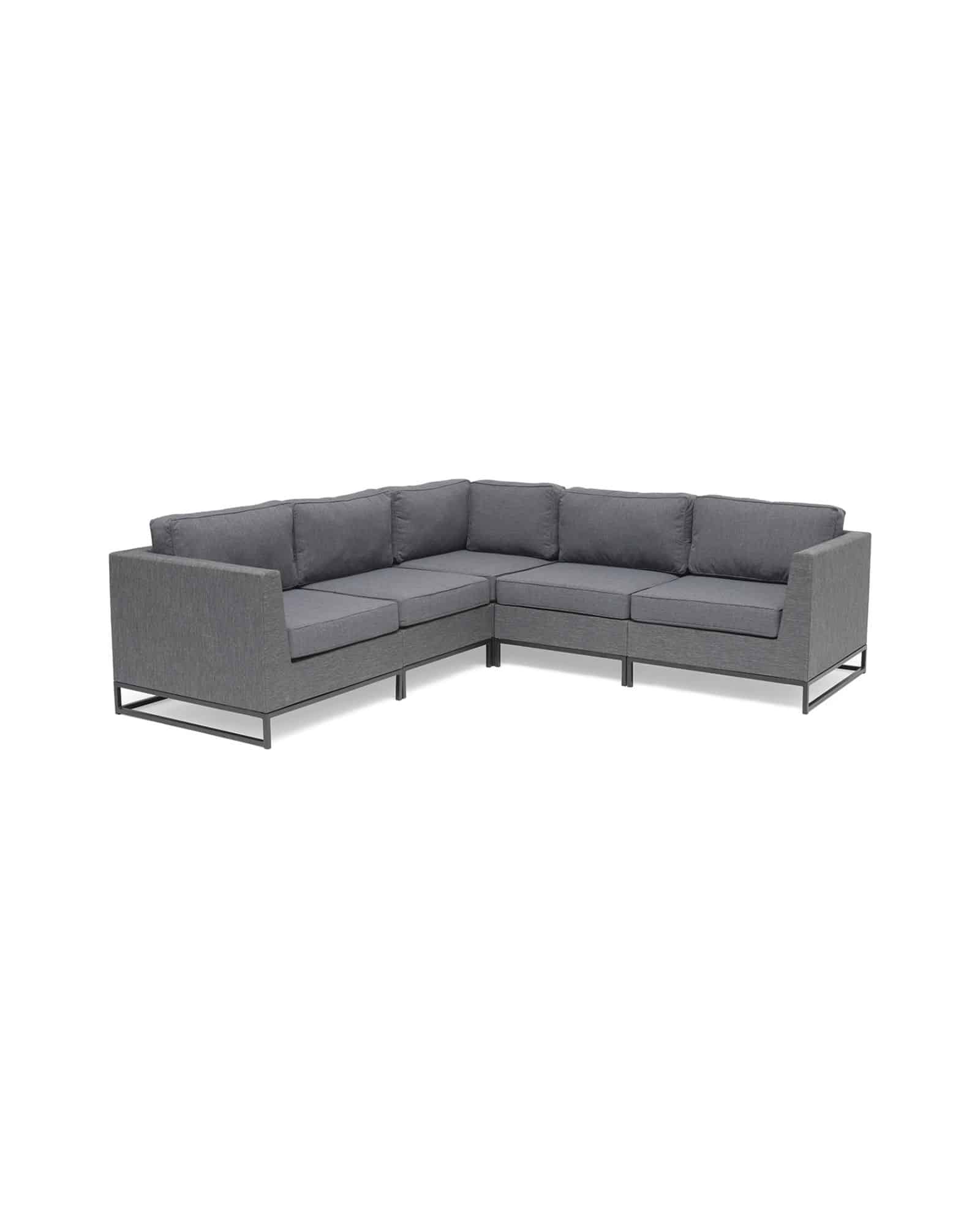 Adelshamn Hörnsoffa är en snygg loungesoffa från Hillerstorp. Ta med innekänslan ut i denna härliga och komfortabla loungesoffa. Soffans svarta metallstomme är klädd med en blandning av textilen och olefin, vilket gör gruppen mer väderbeständig. Dynorna är av olefin med stoppning av fiberfill och riven polyeter för bästa komfort. Dynorna bör plockas in när det regnar. Soffan består av 3 hörndelar, 2 mittdelar. Mörkgrå dynor ingår.