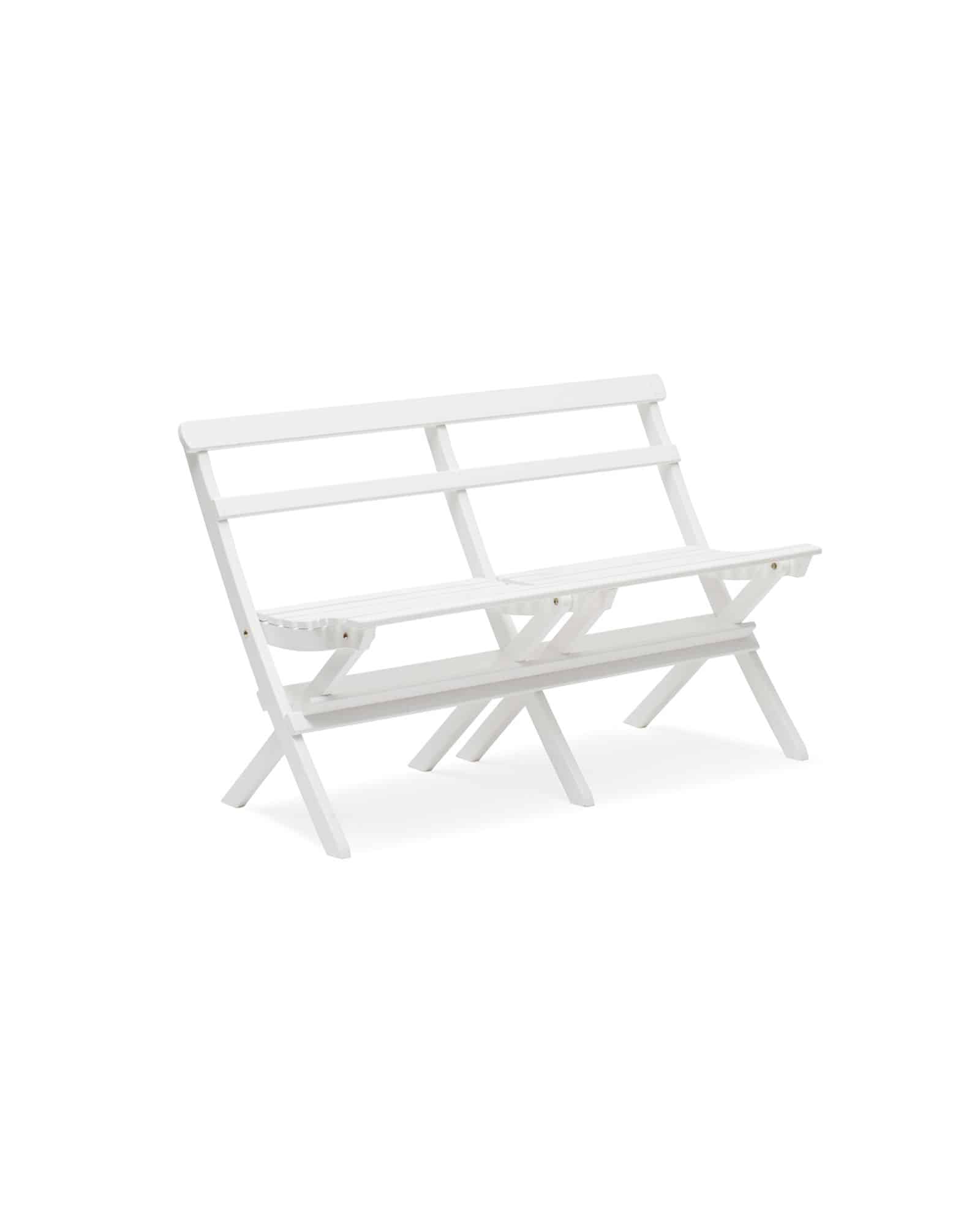Den hopfällbara konstruktionen gör den enkel att flytta och smidig att förvara under vintern eller när den inte används. Den vita färgen (RAL 9010) ger ett fräscht och tidlöst uttryck som passar i alla trädgårdar och uteplatser. Soffan kombinerar stil, funktion och tradition på ett elegant sätt.