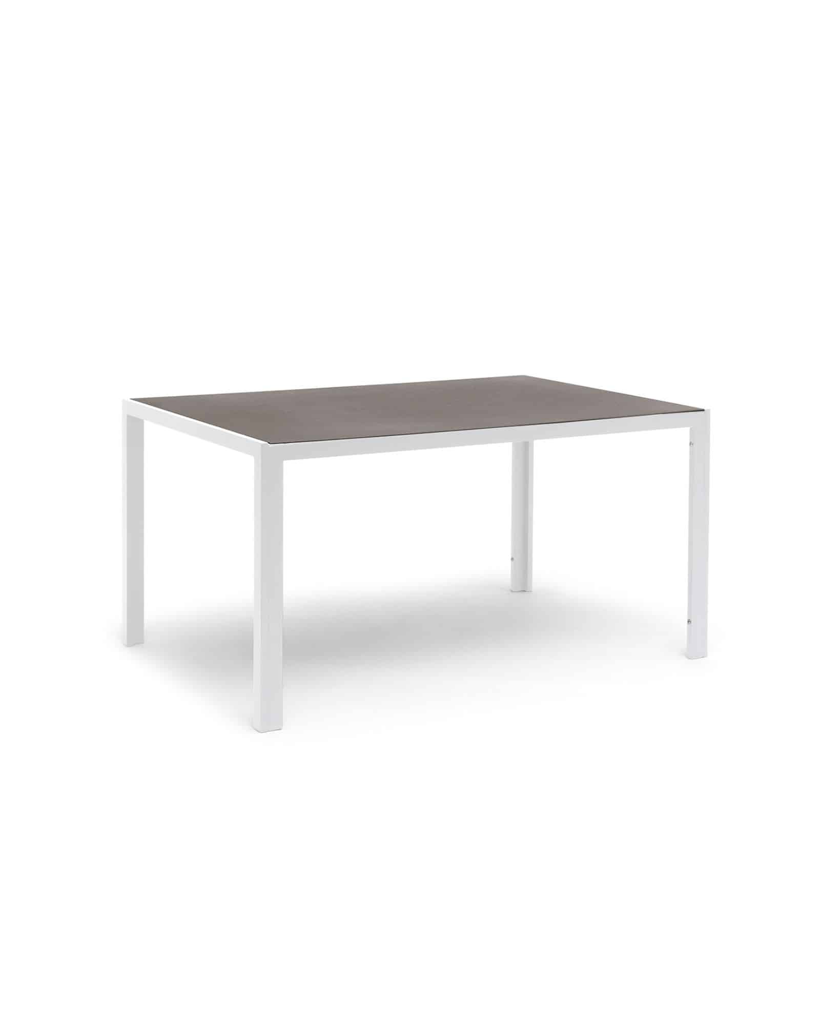 Stilrent och underhållsfritt allroundbord som passar till många olika stolar. Tillverkad i aluminium. Bordsskiva i varmgrå melerad keramisk glas, 5 mm tjock.