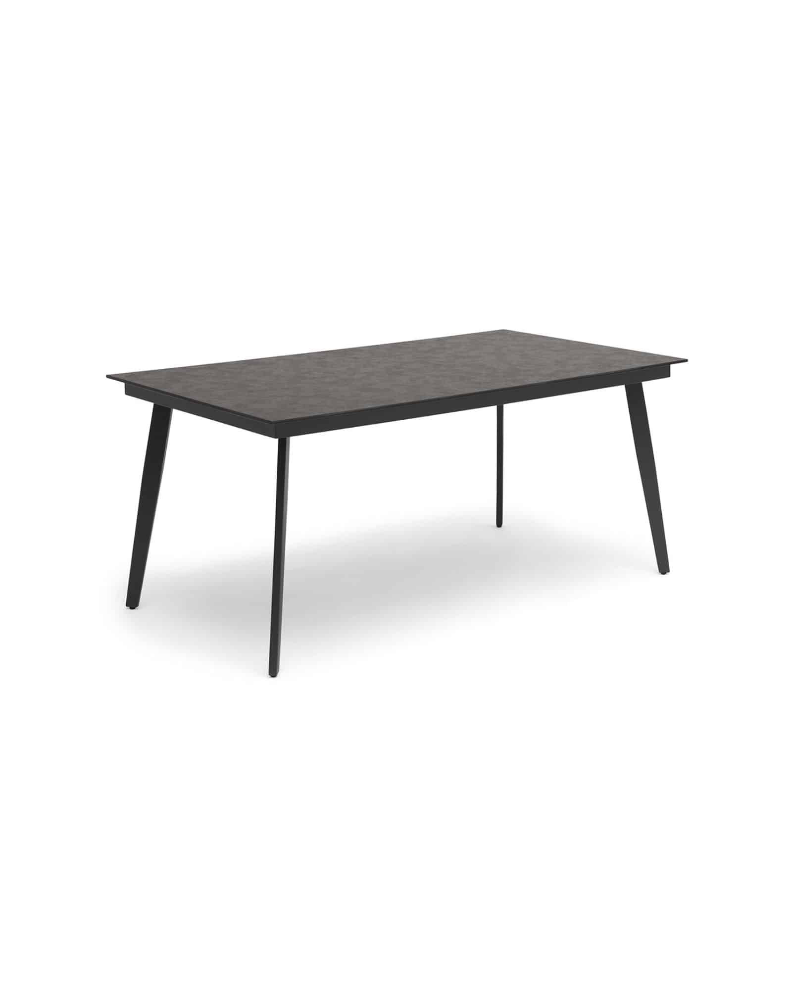 Ett elegant och lättskött matbord i mörkgrå aluminium och bordsskiva i mörkgrå laminat.