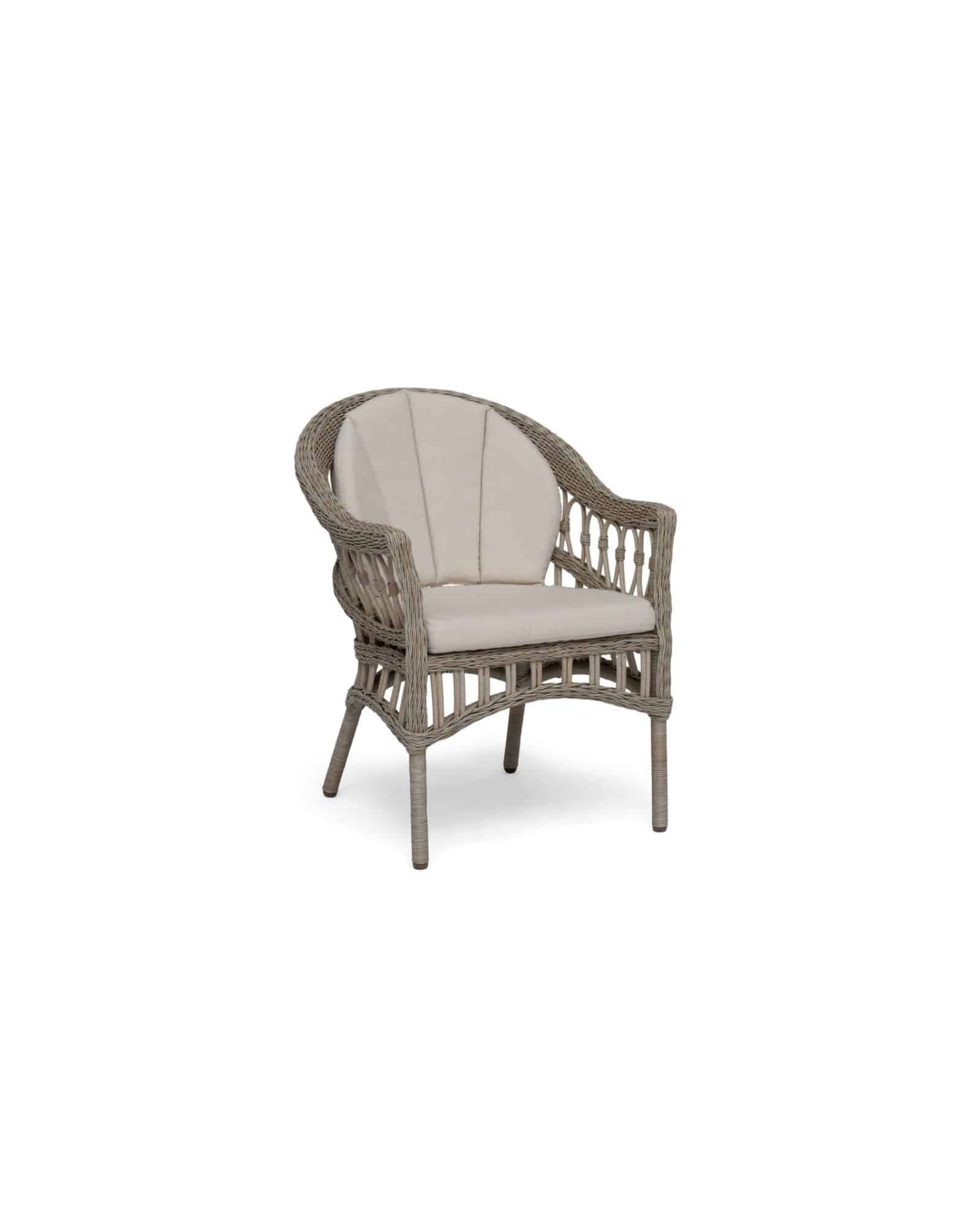 Den tidlösa designen gör att fåtöljen passar lika bra inomhus som utomhus, och den är enkel att underhålla tack vare slitstark konstrotting.
